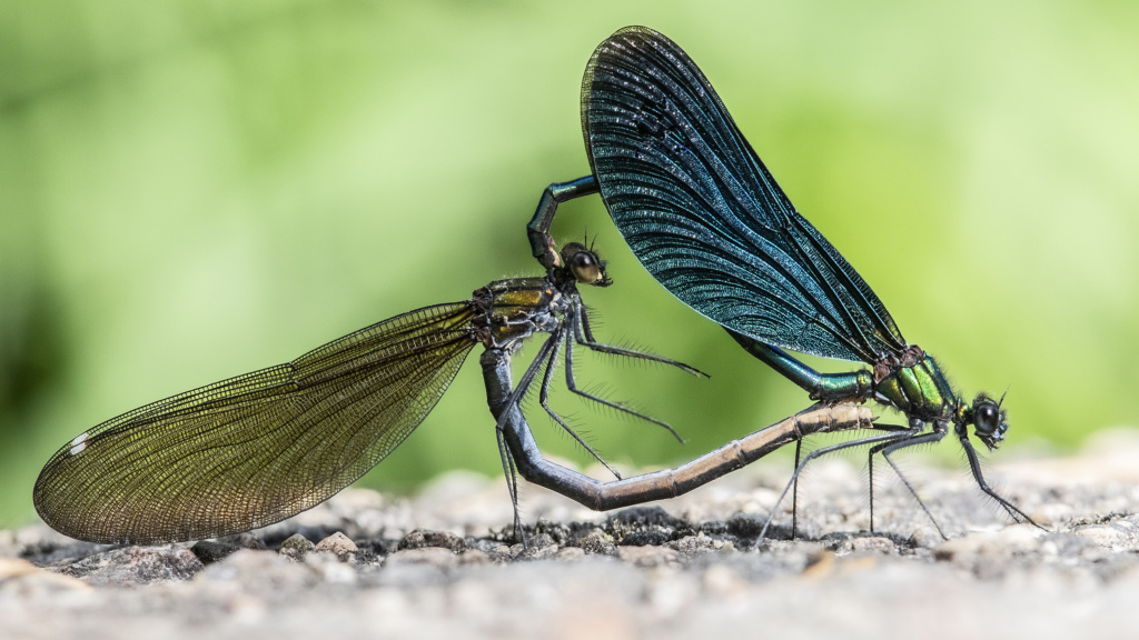 Blant de fem bildene med flest stemmer, var det hele tre med hjerteformede paringshjul av – du gjettet det – Calypteryx virgo.