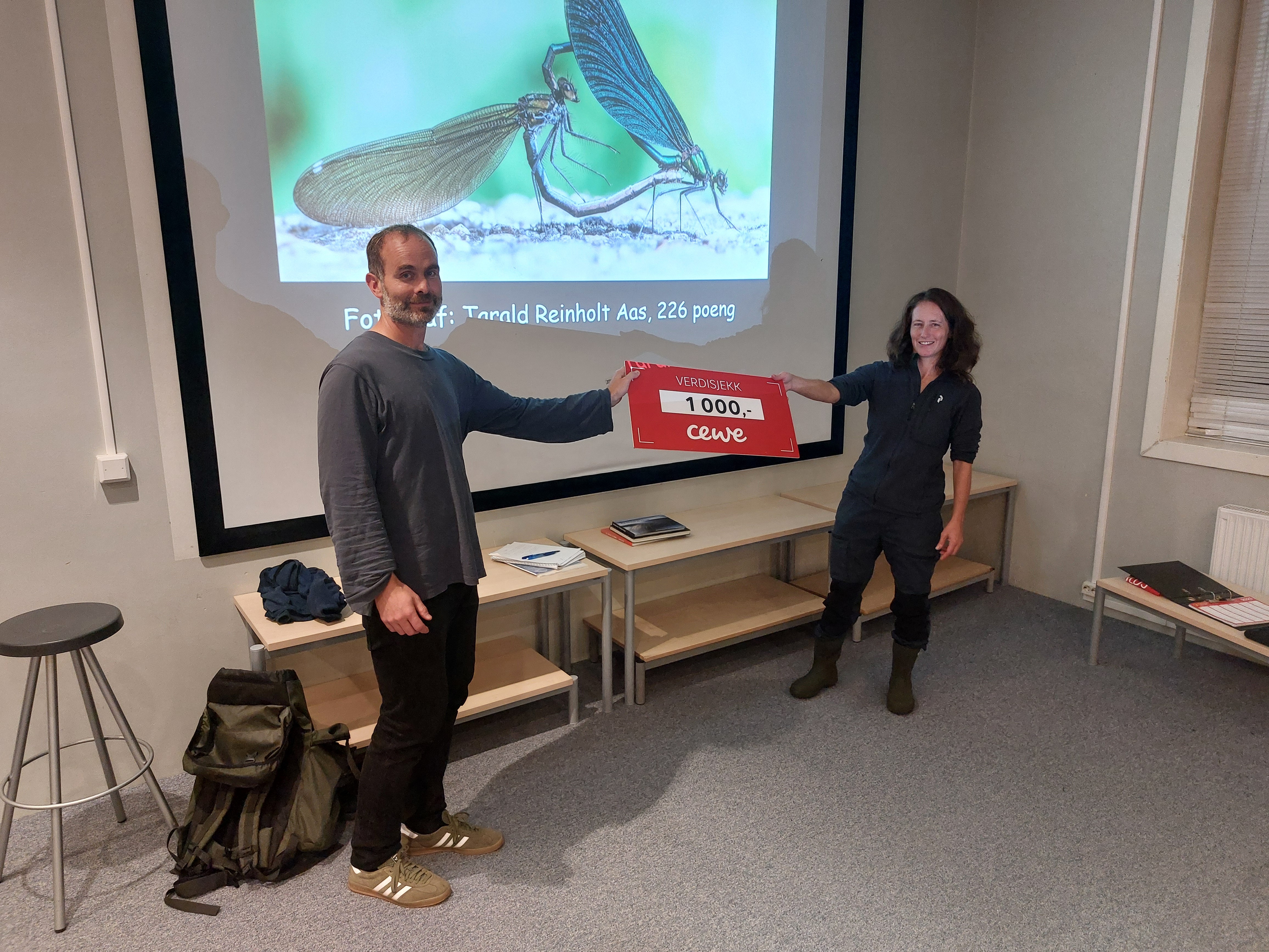 Førsteplassen, bare én stemme foran Tone Heggelund og hennes blåpraktvannymfer, gikk til ham som skriver dette. Torstein Wremers gresshoppe snek seg foran neste par med Calypteryx virgo, knipset av Terje Alveberg
