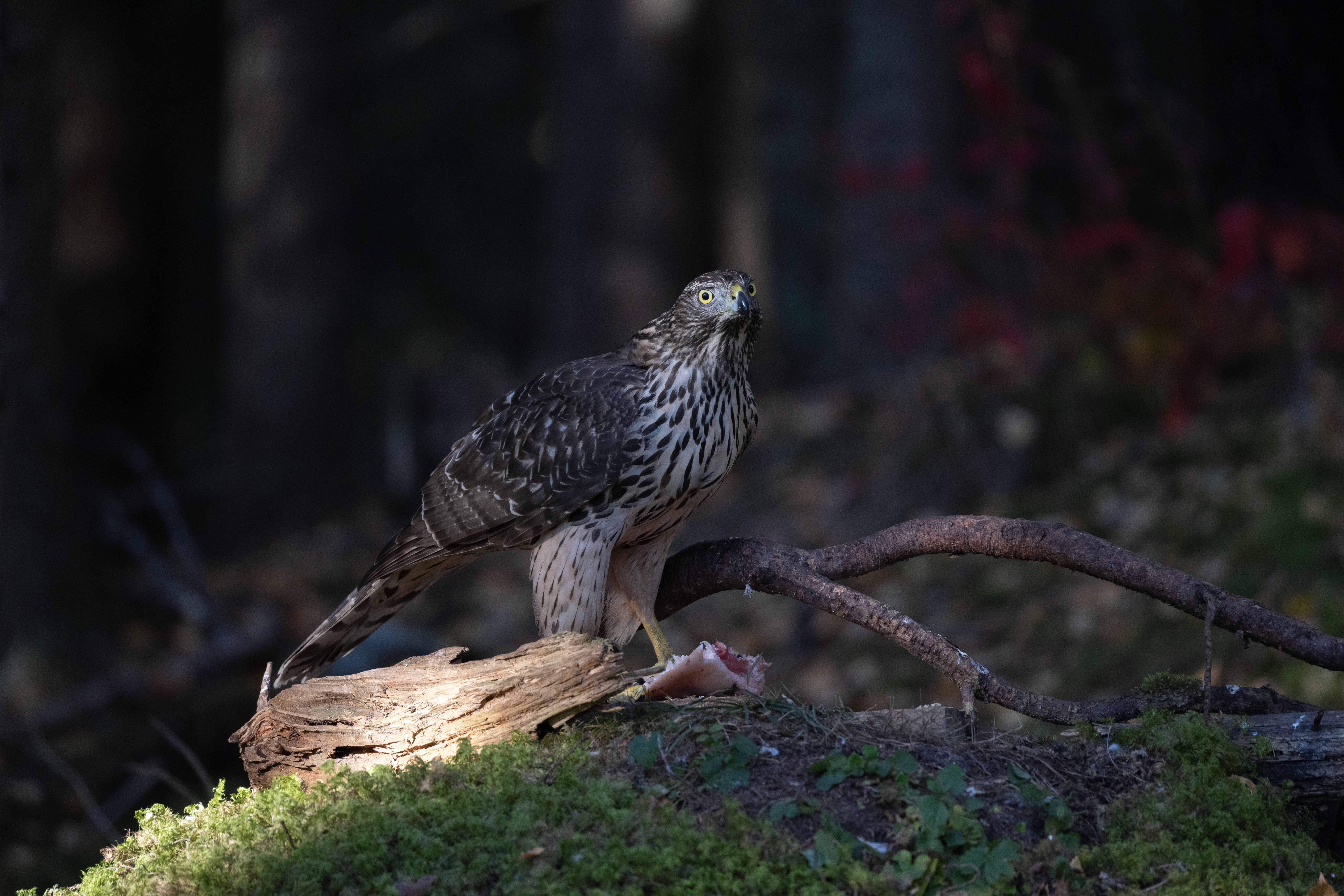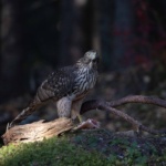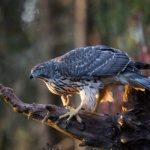 Allerede før solen stod opp var det liv og røre blandt fuglene. Det var for det meste kråkefugler og småfugler, og disse ble behørig fotografert. Men det var hønsehauken vi ventet på og ville ta bilder av. Og visst gjorde den sin entré og lot seg villig posere for fotografene. Vi var utrolig heldige med lyset den dagen vi satt i skjulet, og lyset ble bare bedre og bedre utover dagen og ettermiddagen.
