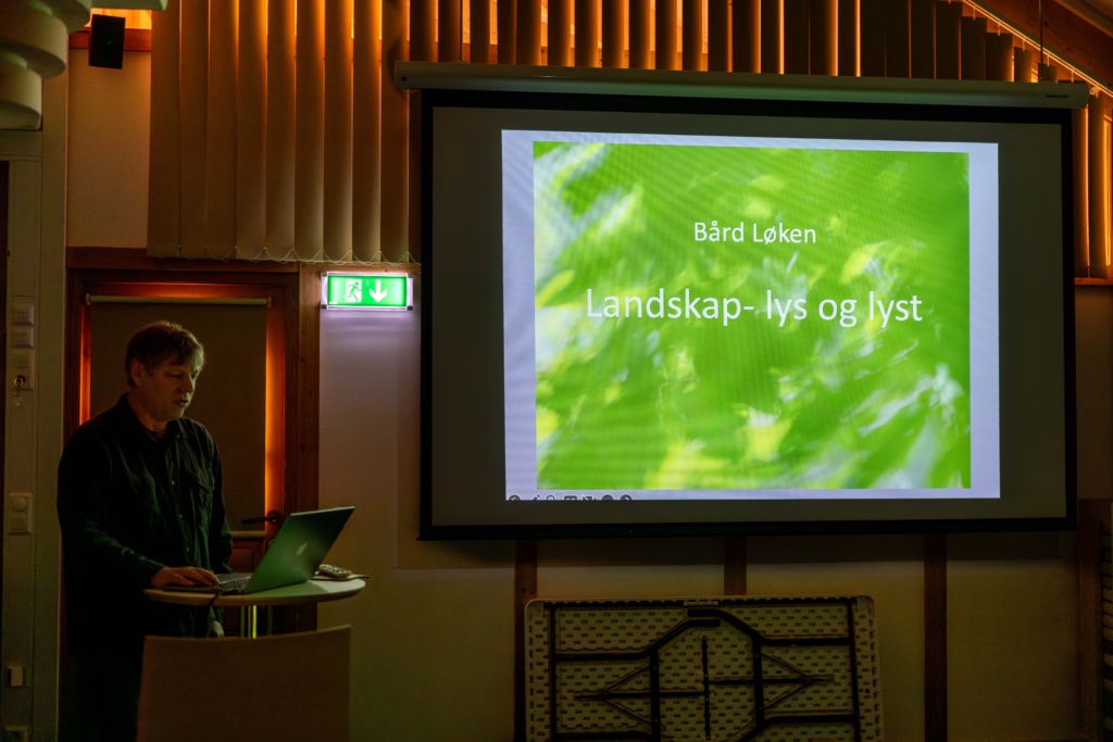 Bård Løken viste bilder under medlemsmøte for Biofoto Innlandet