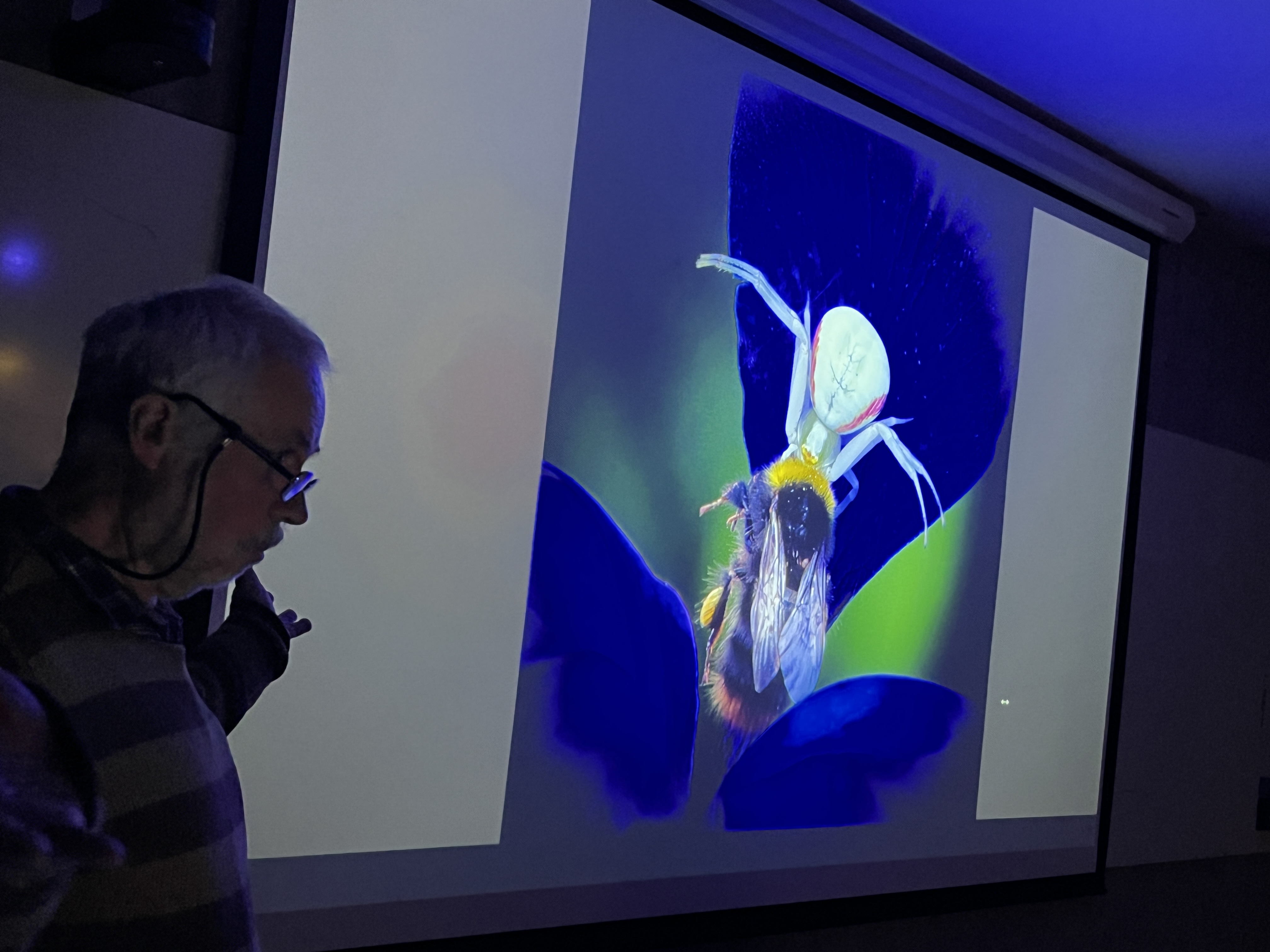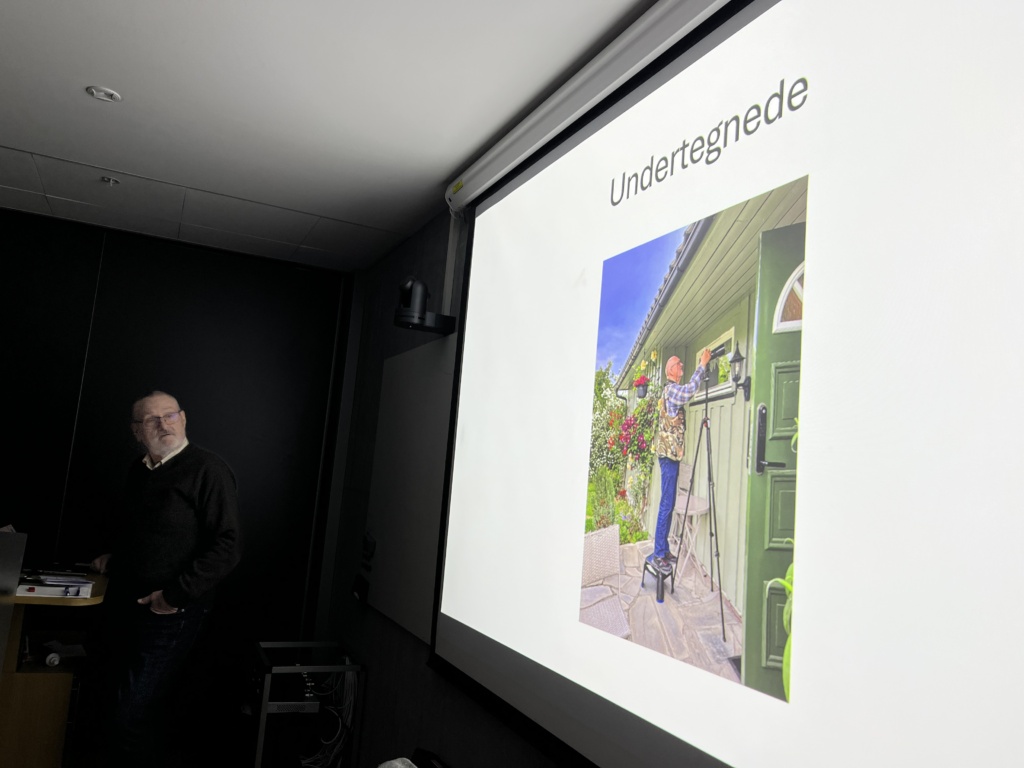 Først ut var BFS-medlem Tom Lennart Larsen med sitt svært kortreiste fotoprosjekt: nemlig hva som setter seg rundt utelampa gjennom natta. Som bildene hans viste, er det ganske mye.