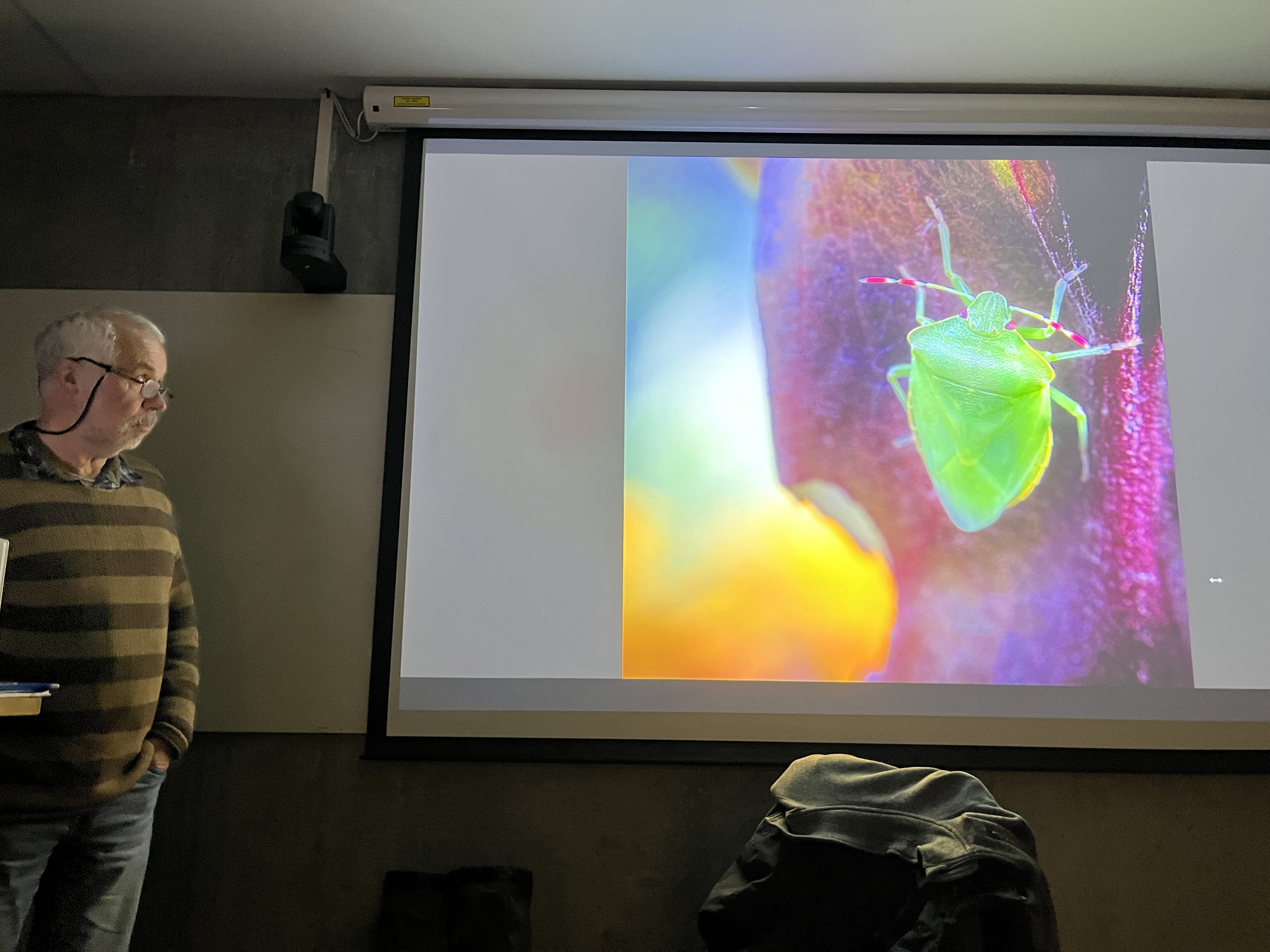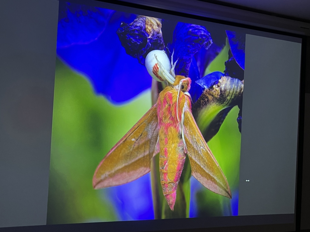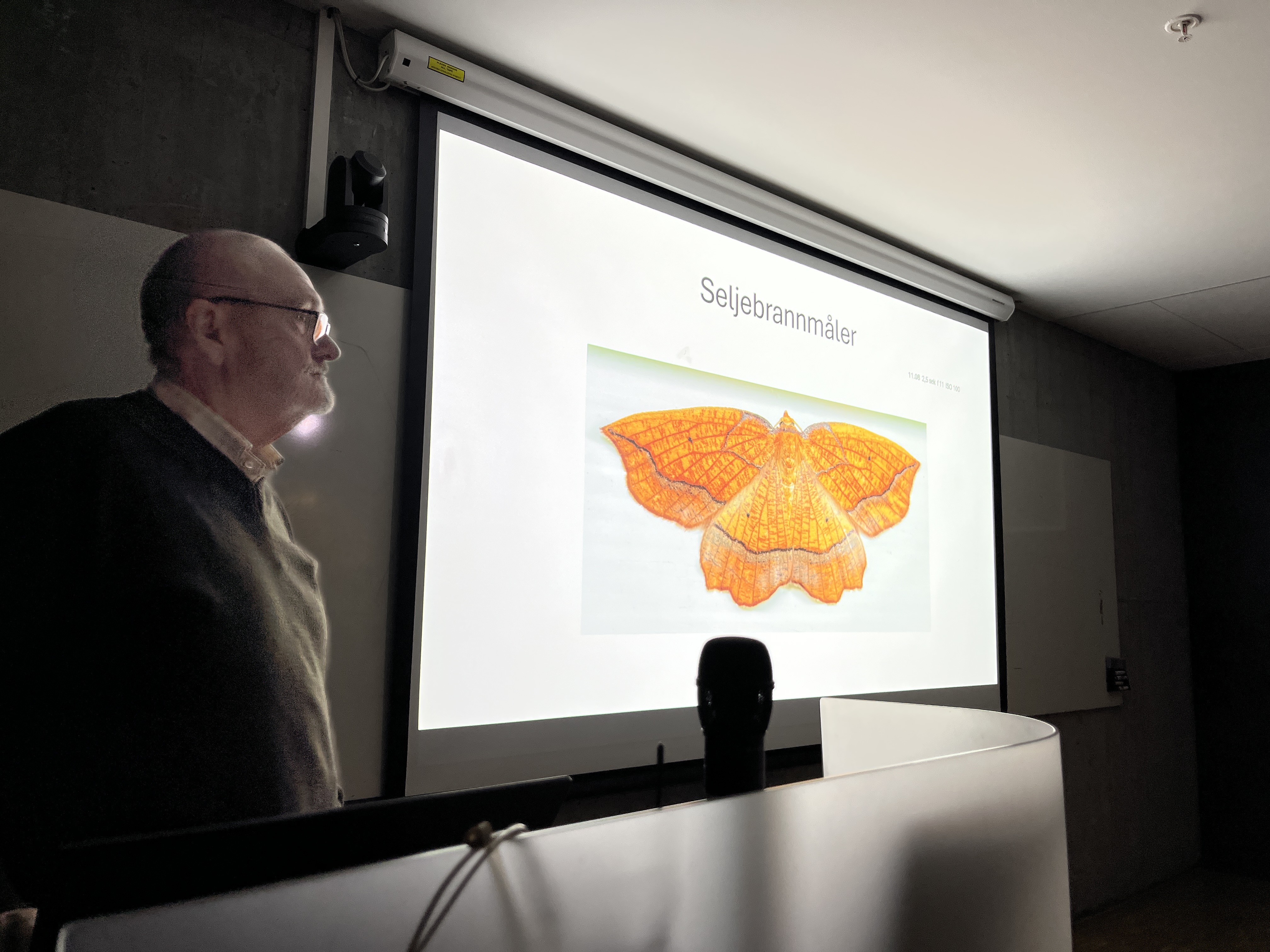 Tom Lennart tok medlemmene gjennom flotte makrobilder av både målere, nattfly, spinnere og møll, flere av dem med flotte artsnavn. Kaprifolfingermøll og stor perikummåler er nevnt, men ingen glemt.