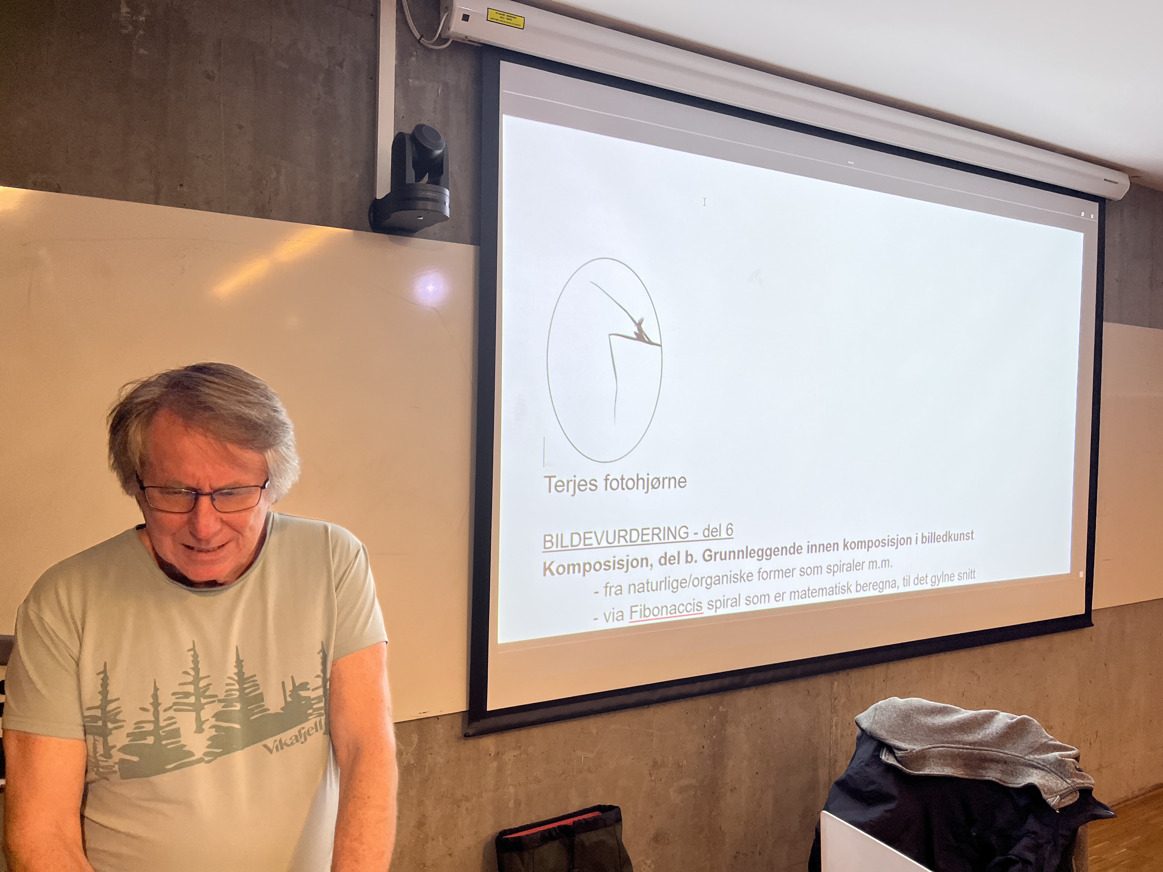 Denne kvelden tok leder Terje oss gjennom nye former for komposisjon, som trekanter, S-former og L-former i bilder. Terjes bildet av en tre, og plasseringen av det, utløste en god og konstruktiv debatt med innspill fra flere medlemmer.