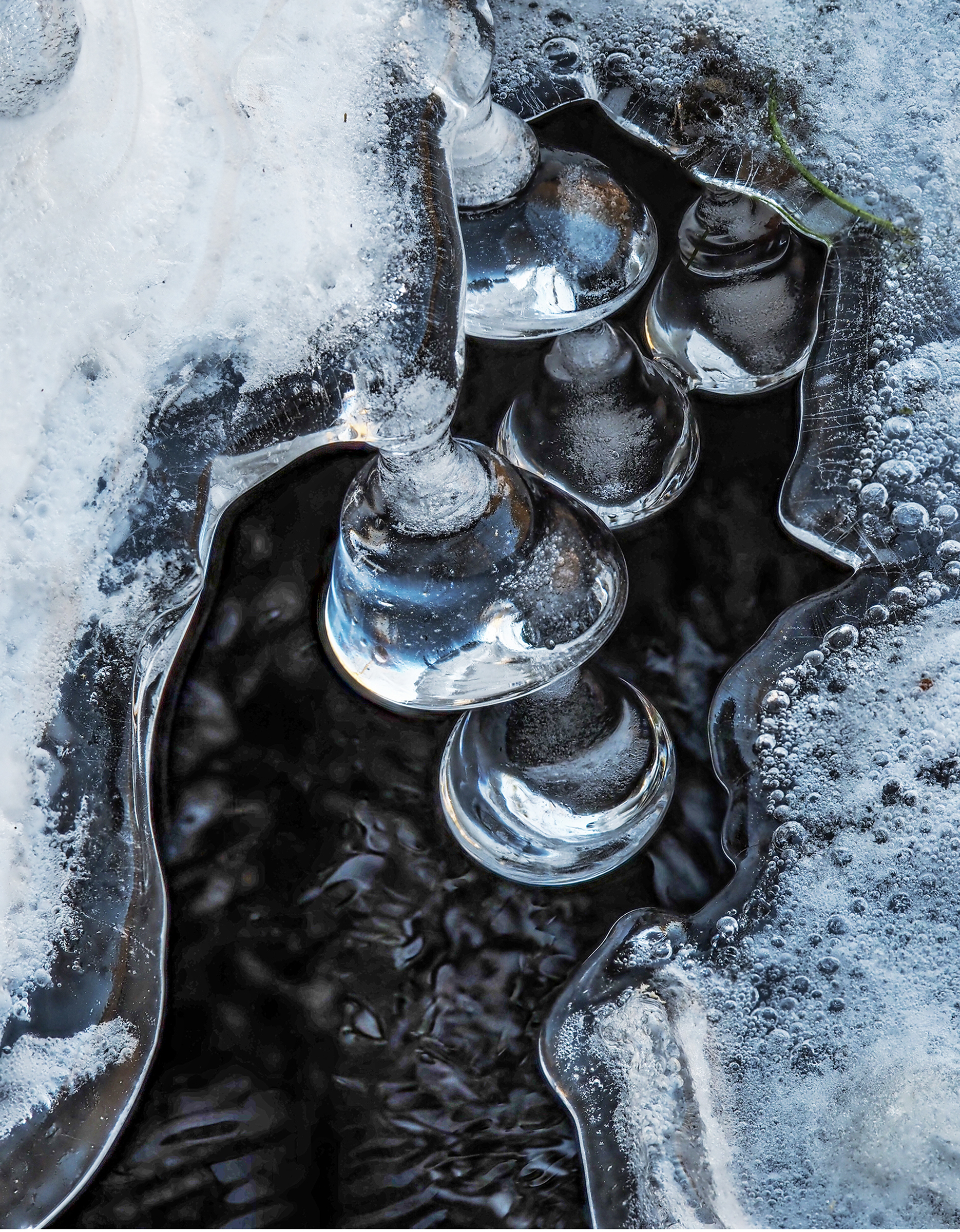 Det ble 23 innslag og is i mange former i februarkonkurransen. Mange hadde funnet flotte former i vinterkulda. Aller skarpest gjorde Magne Storøys lille is-skulptur, fotografert fra lavt perspektiv.