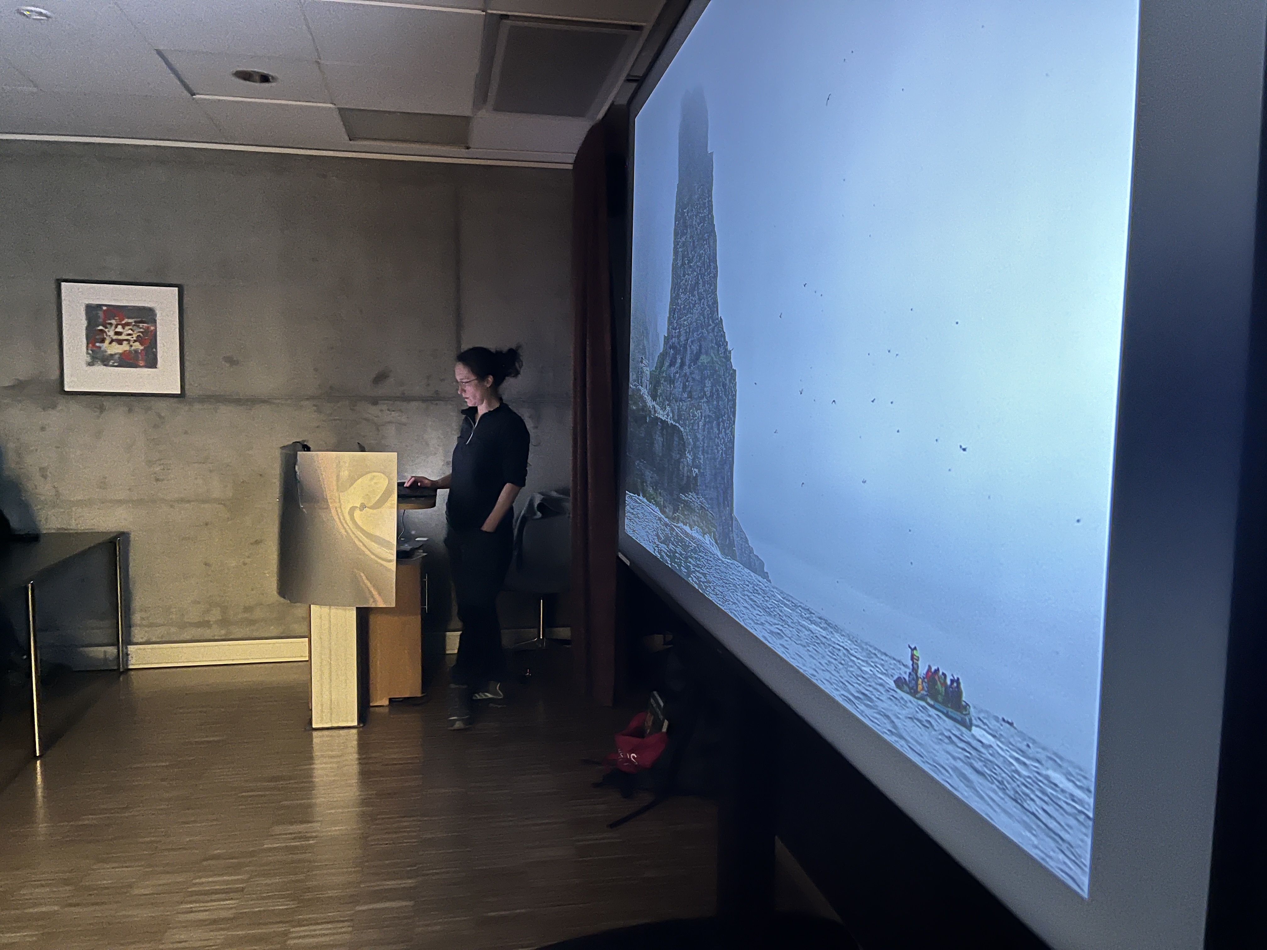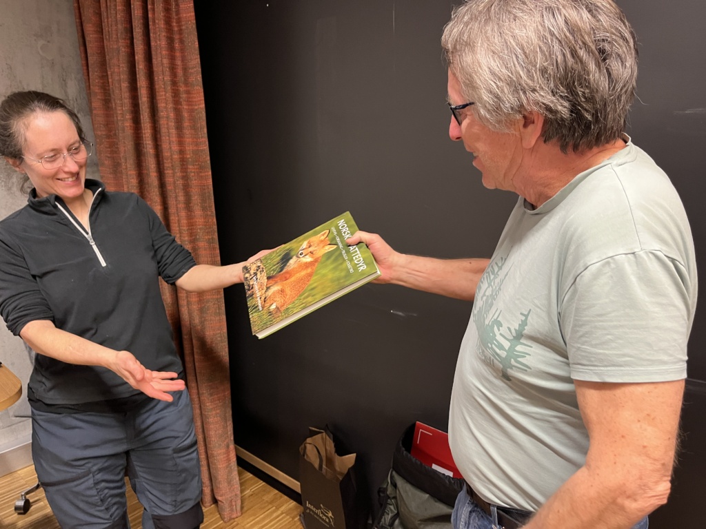Foredragsholderen takkes med fotobok. Foto: Tarald Reinholt Aas