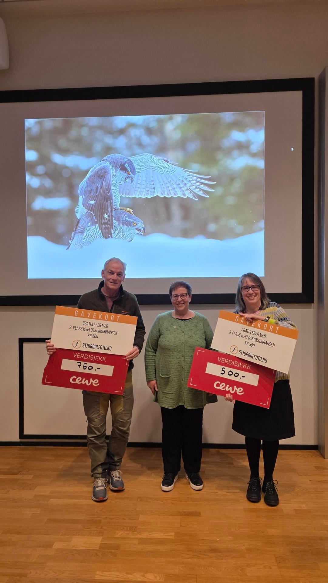 Vinnerene av kveldskonkurransen, med tema “Vårtegn” ble Tom Rolf Ingebretson, Nils Olaf Thonvald og Åsne Vigran med hhv 1, 2 og 3 plass. Vinnerne fikk som vanlig to gavekort hver fra våre sjenerøse sponsorer, CeWe og Stjørdal Foto. Vi gratulerer!