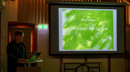 Bård Løken viste bilder under medlemsmøte for Biofoto Innlandet