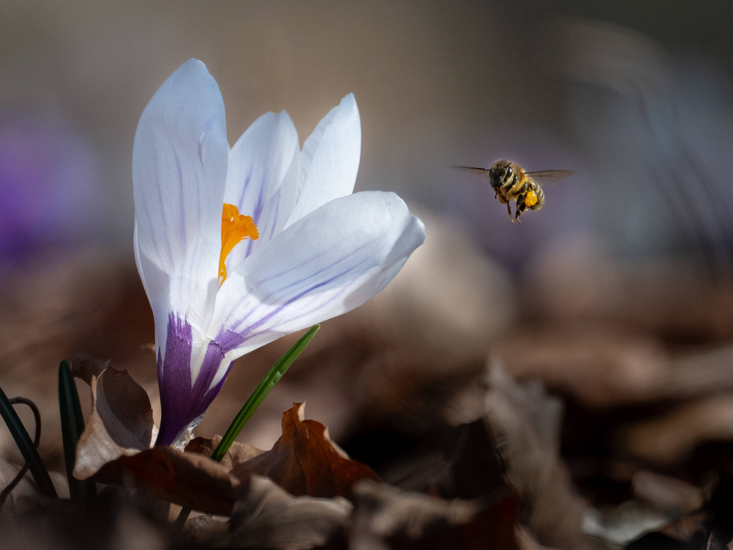Mykt lys skaper et harmonisk og fint bilde av fuglen i bevegelse. Den diffuse bakgrunnen er en fin innramming og gir betrakter innsikt i omgivelsene den flyr over. Skarpheten er på nebbet. Savner at øyet også er skarpt.