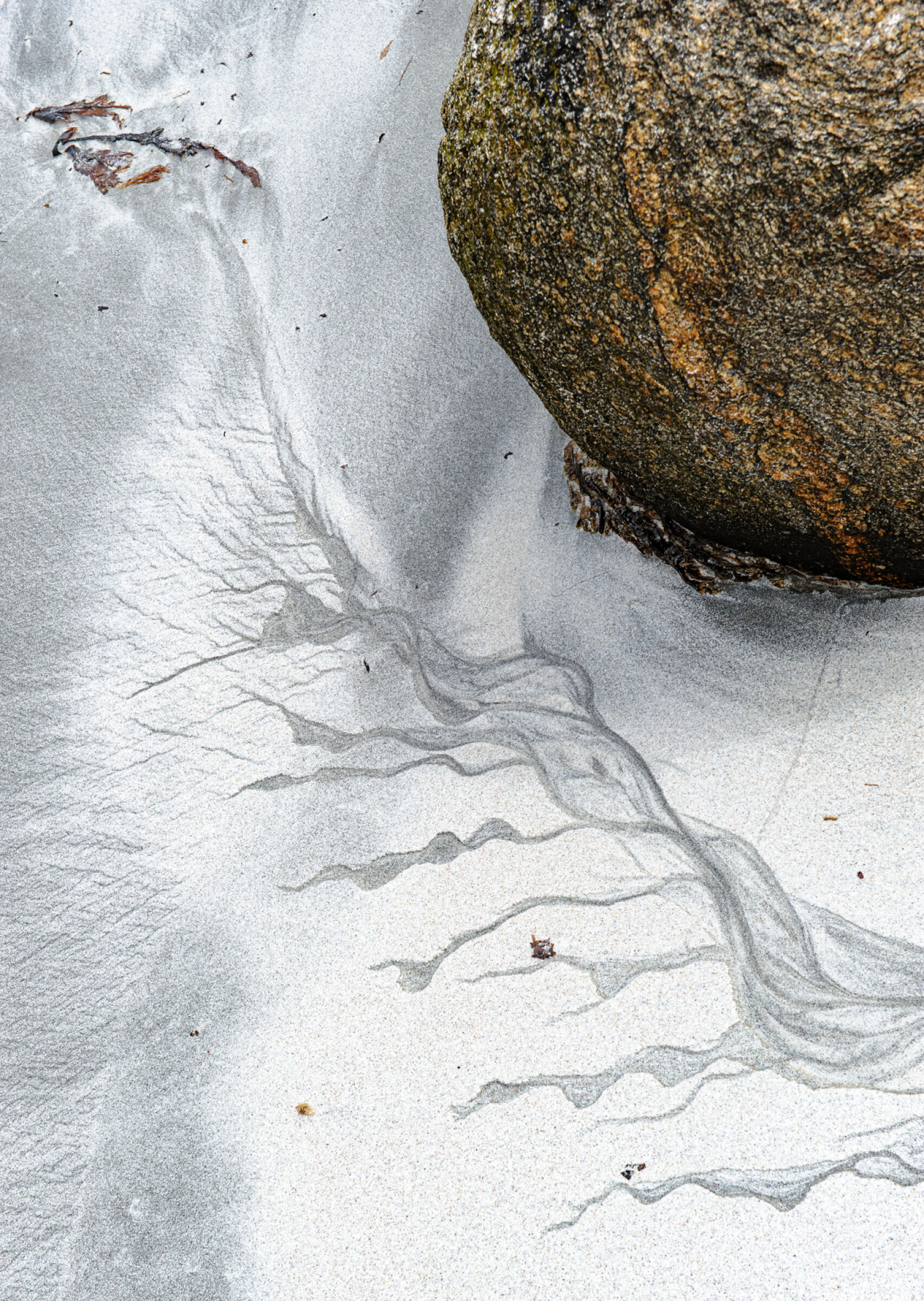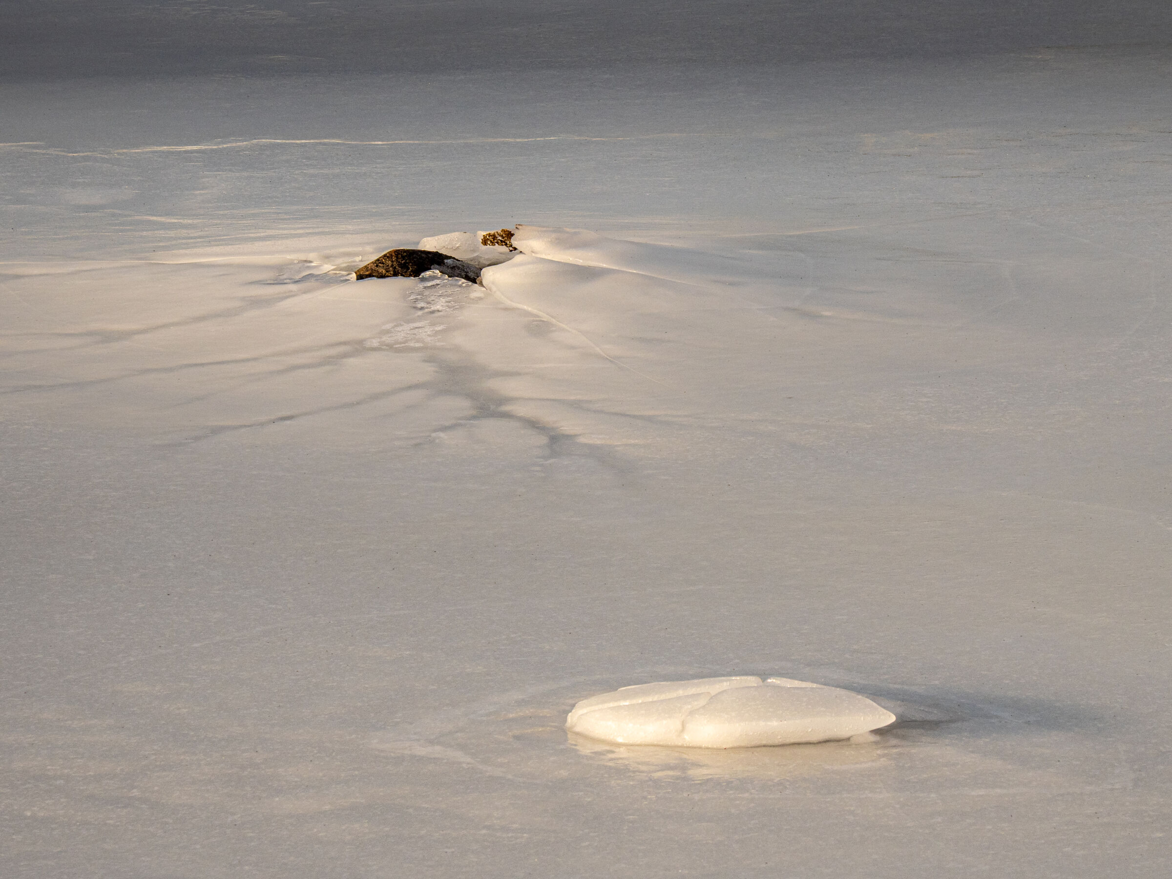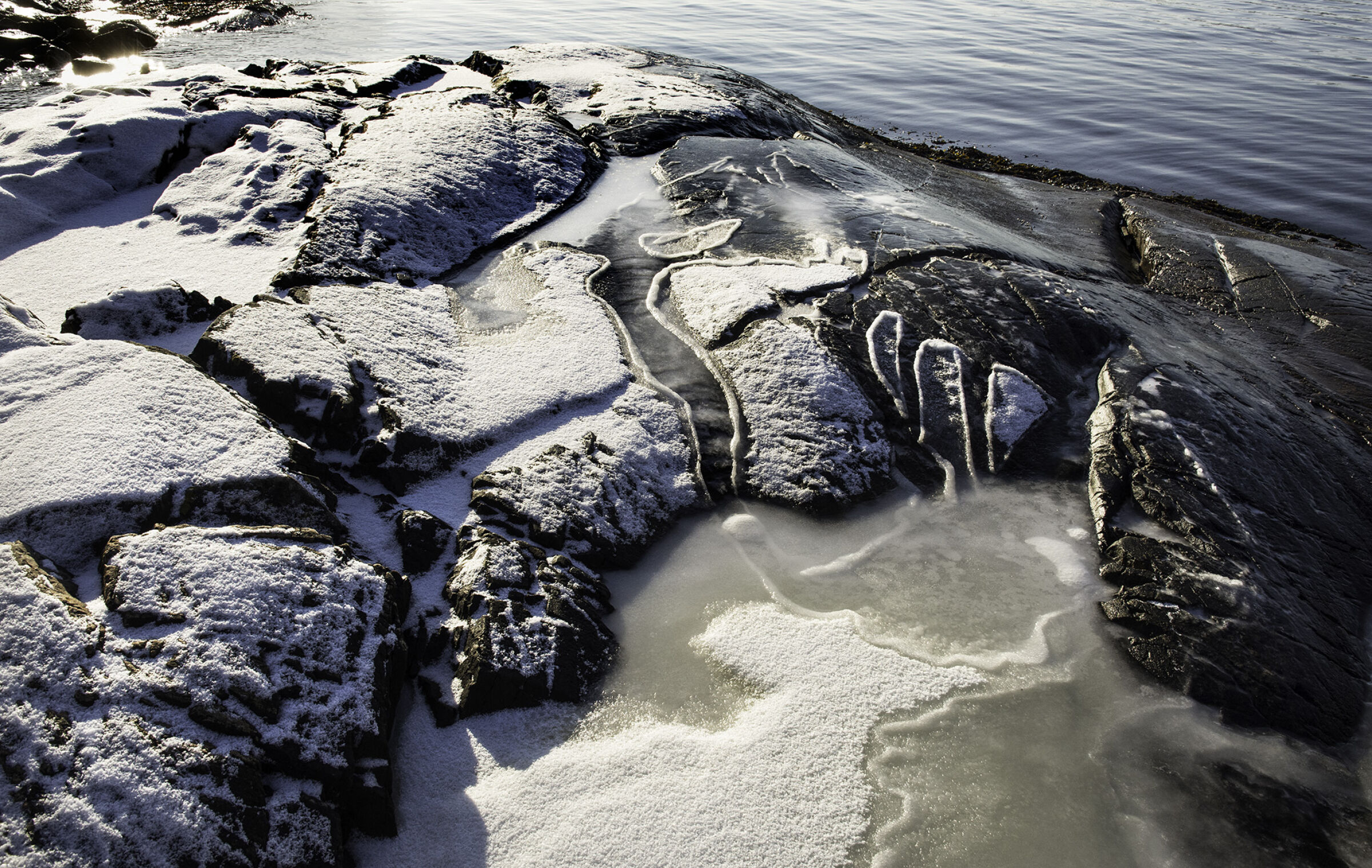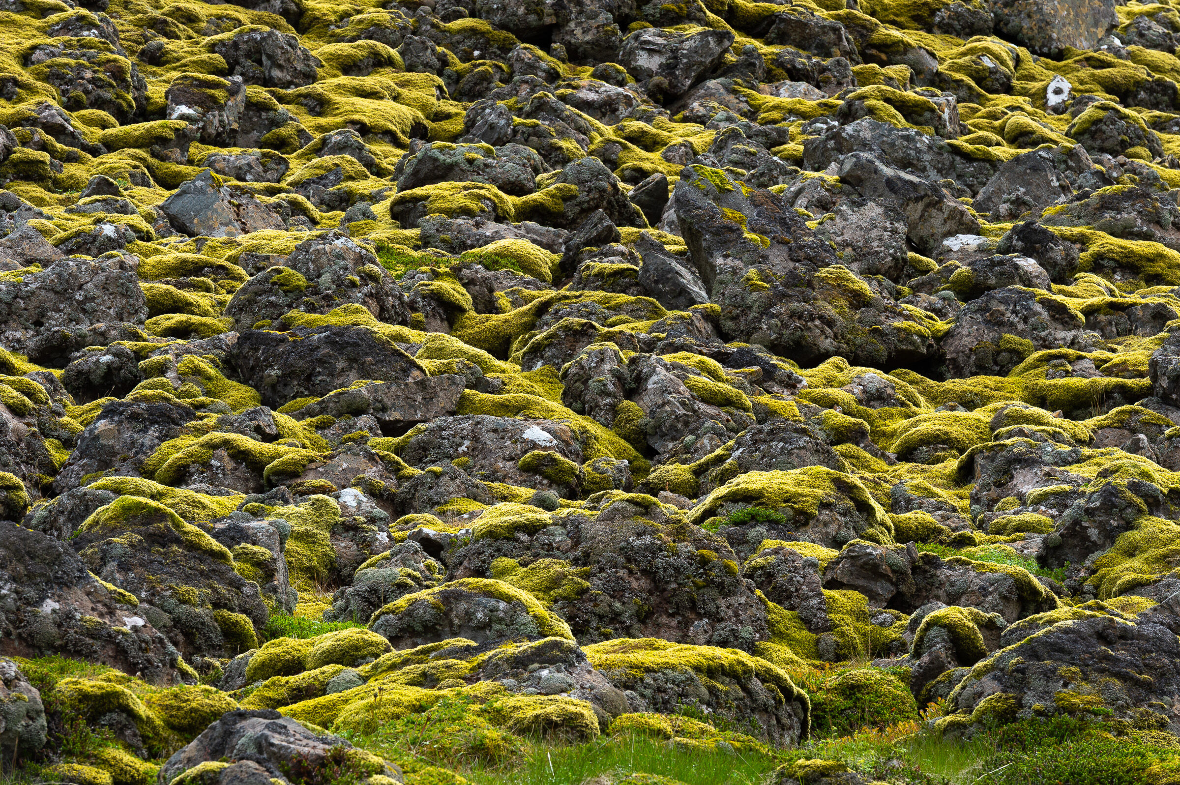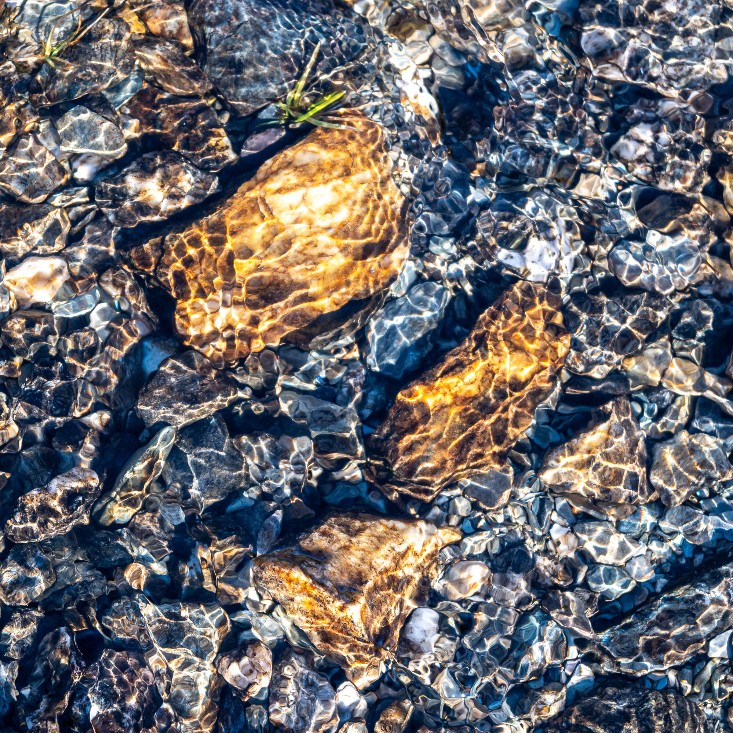 En fin detalj fra en bekkekløft eller fra relativt nytt land nær en brearm. En del lav på berget indikerer at landet ikke er nytt av året ihvertfall. Litt mye reflekser oppe til venstre