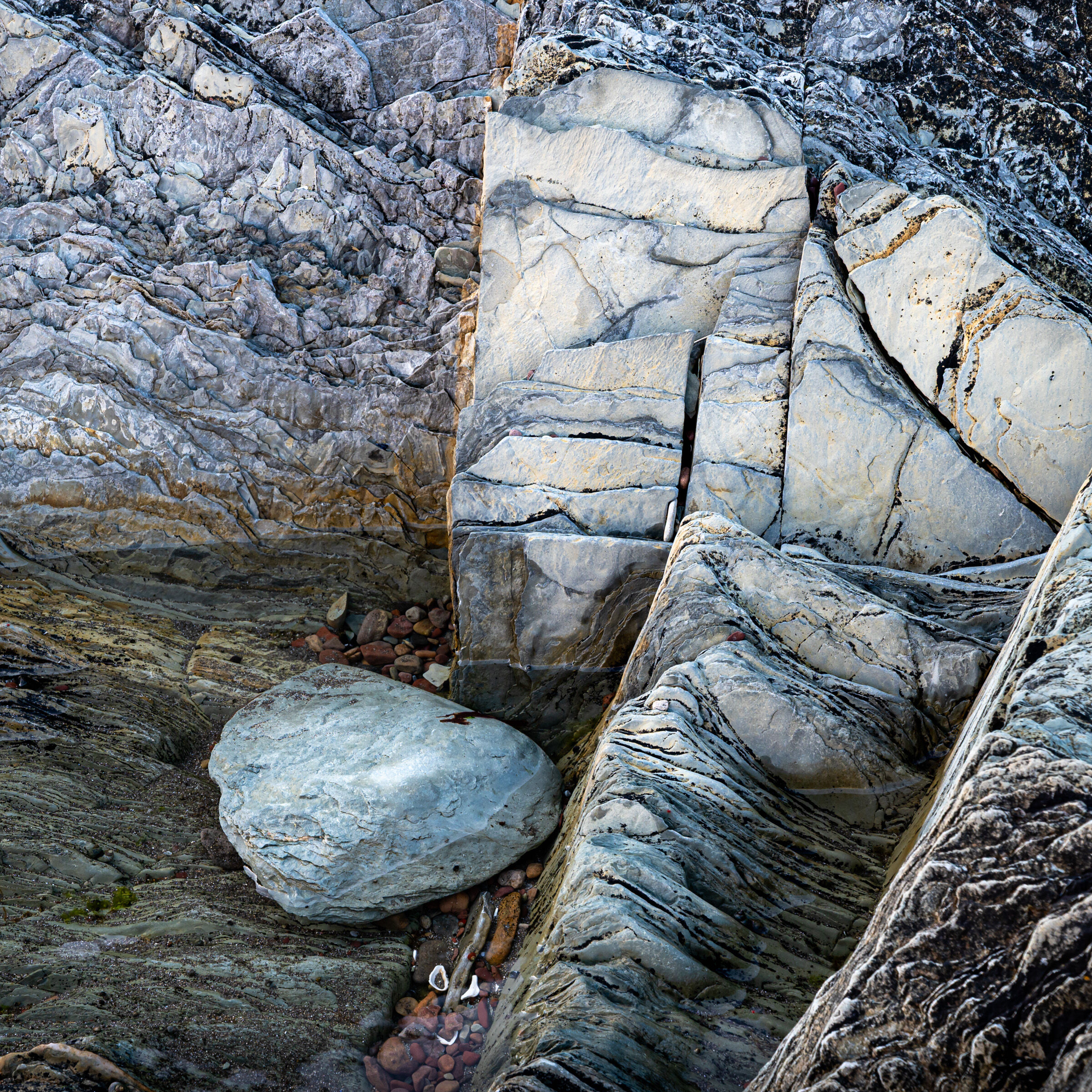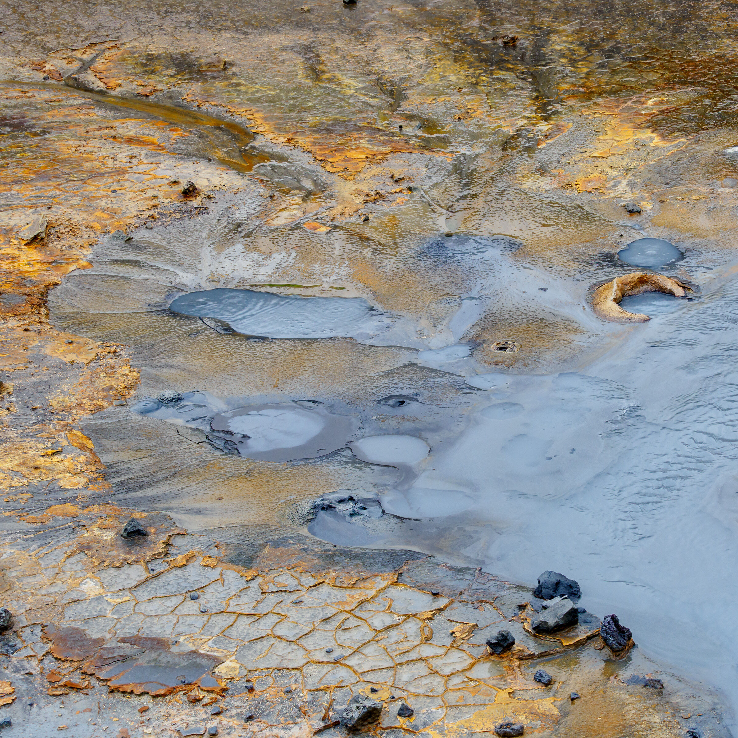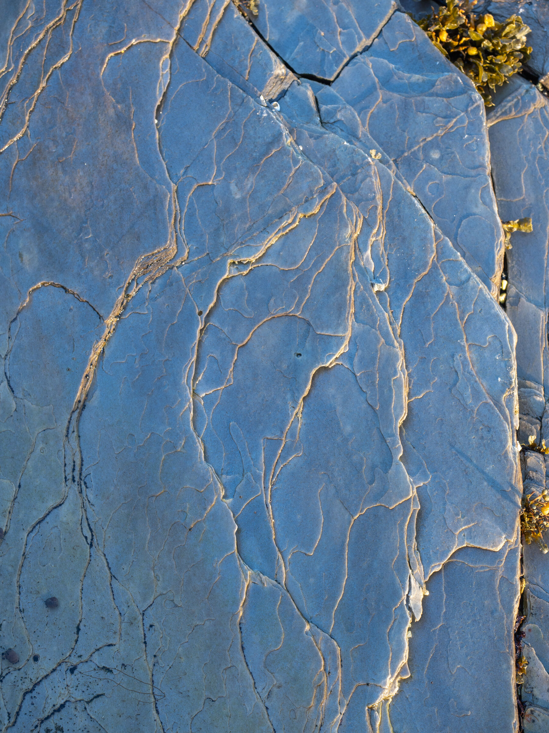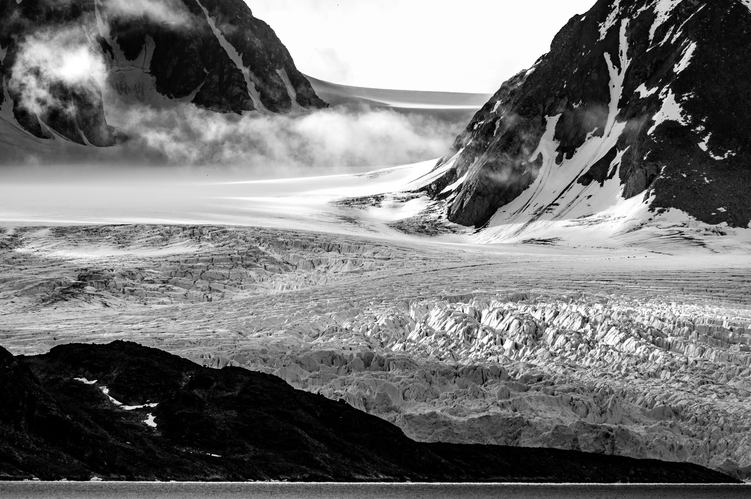En fin detalj fra en bekkekløft eller fra relativt nytt land nær en brearm. En del lav på berget indikerer at landet ikke er nytt av året ihvertfall. Litt mye reflekser oppe til venstre