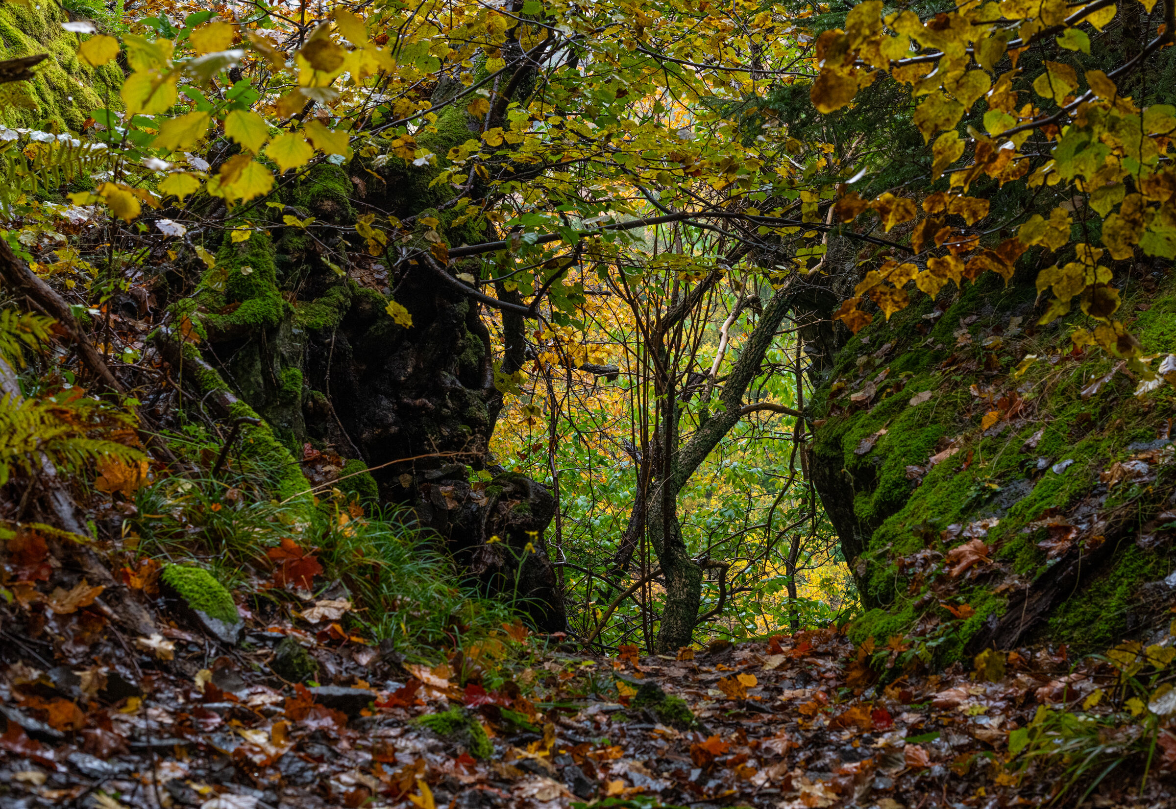 Spennende motiv hvor det er en spennende åpning inn i en ny verden. Problemet er ofte at naturen ser ut som et kaos. Det er jop ikke et kaos, bare mange systemer som er filtrert sammen. Det vanskelige er da å finne en måte å gjengi det hele litt ryddig på.