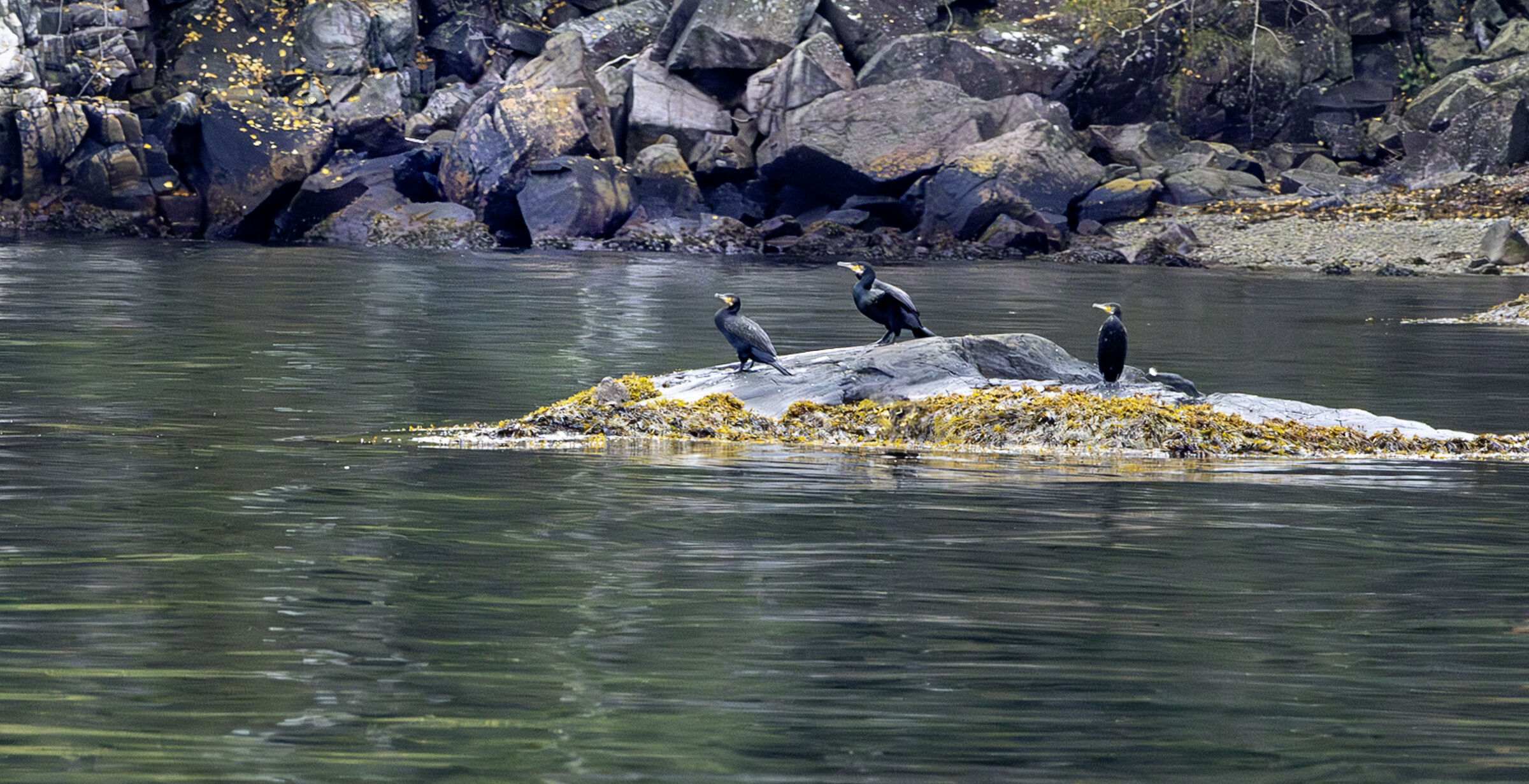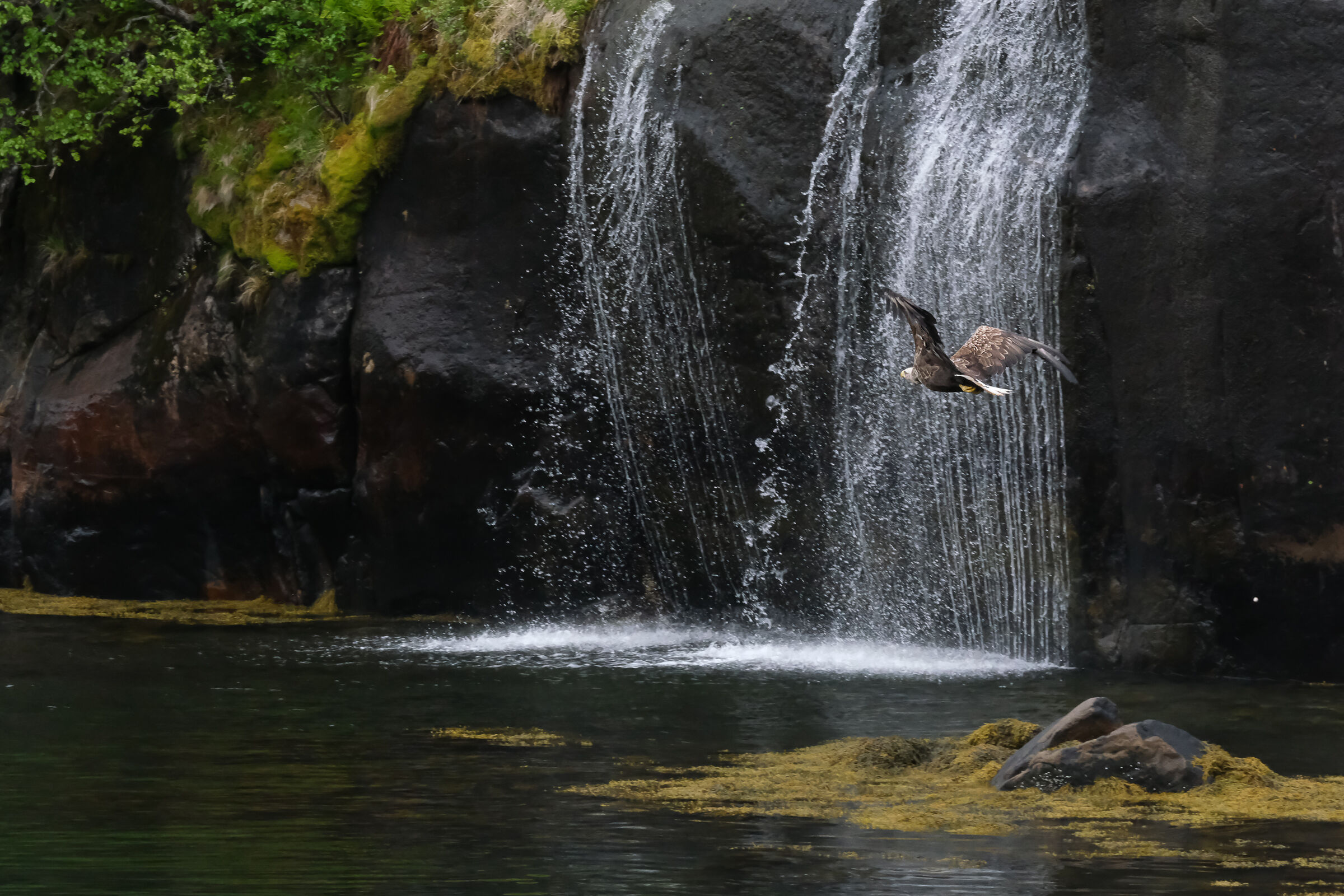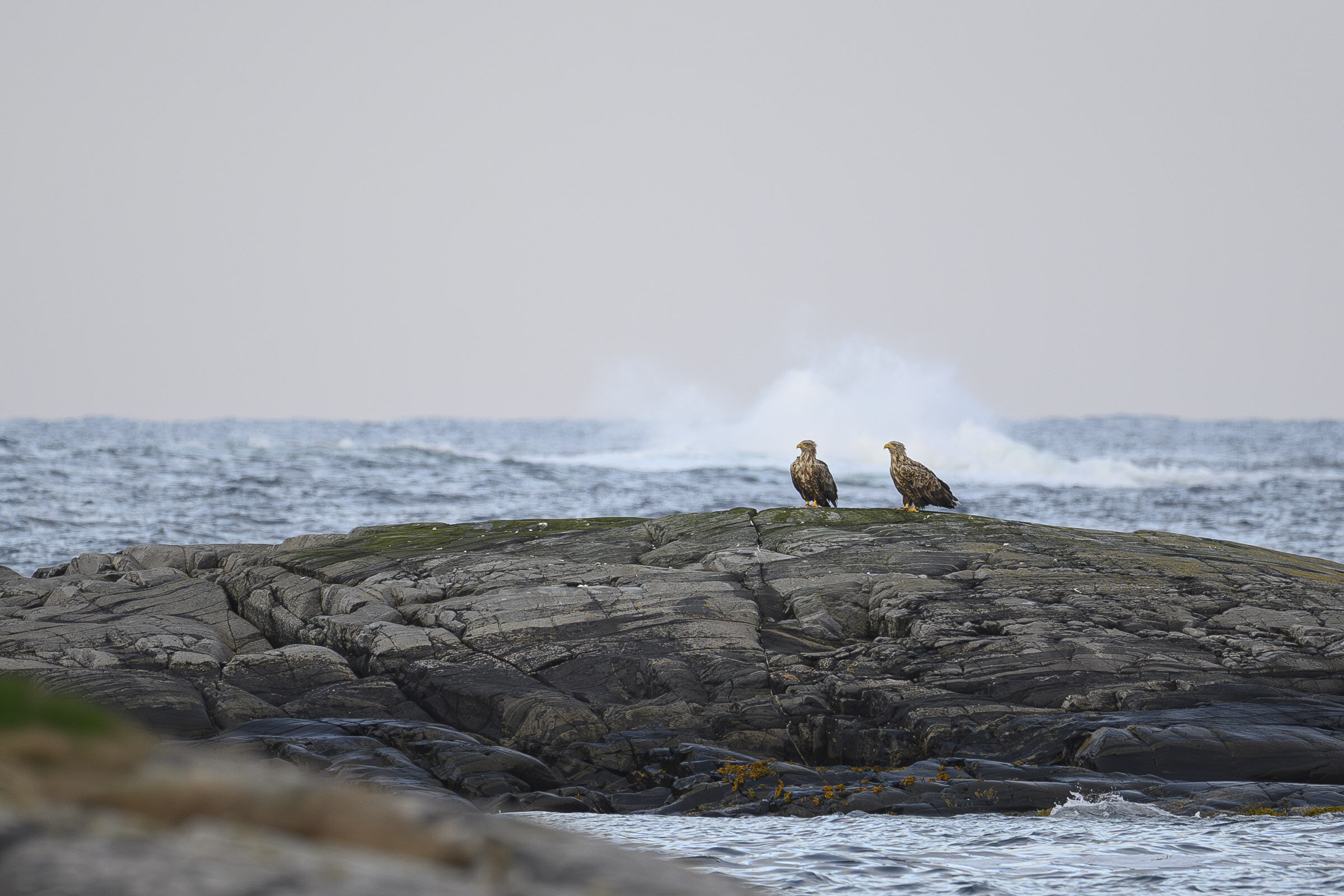 Bra fanget og liker at ørnene sitter der bølgen slår opp bak fuglene. Kunne med fordel blitt beskjære i overkant for å få en røffere komposisjon |