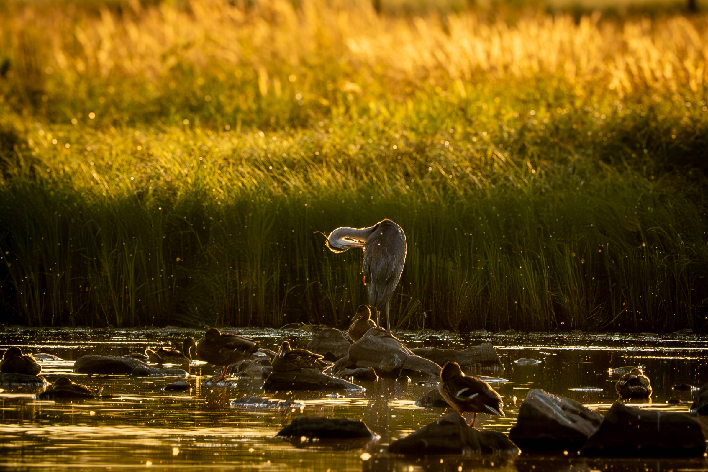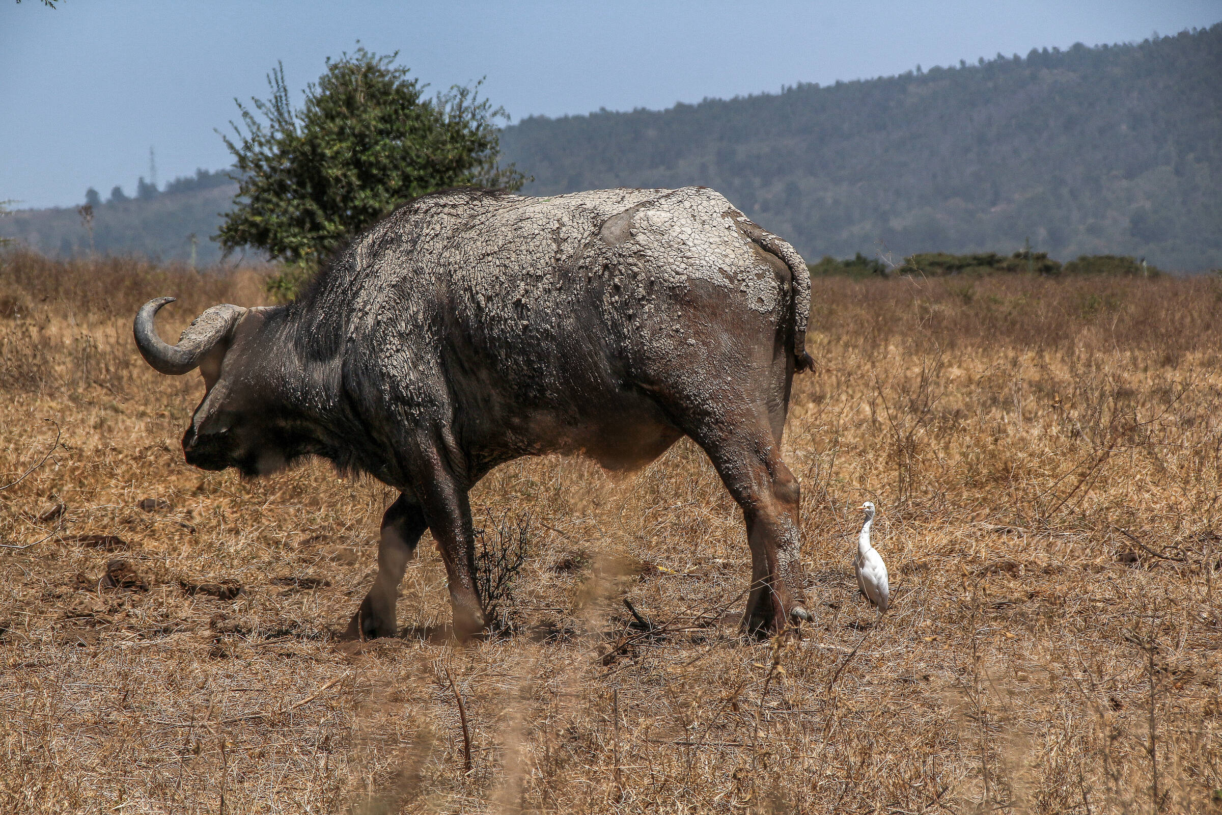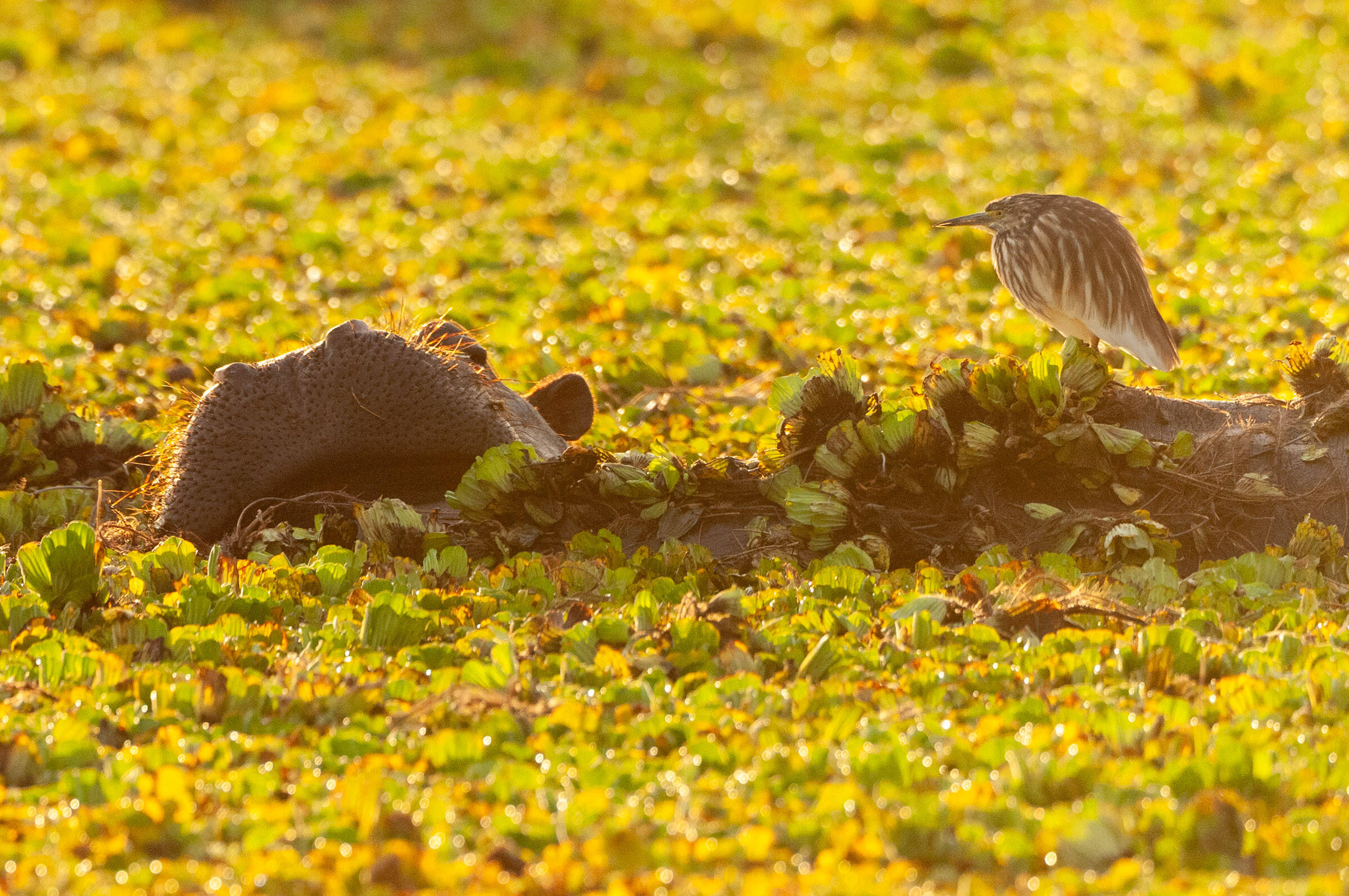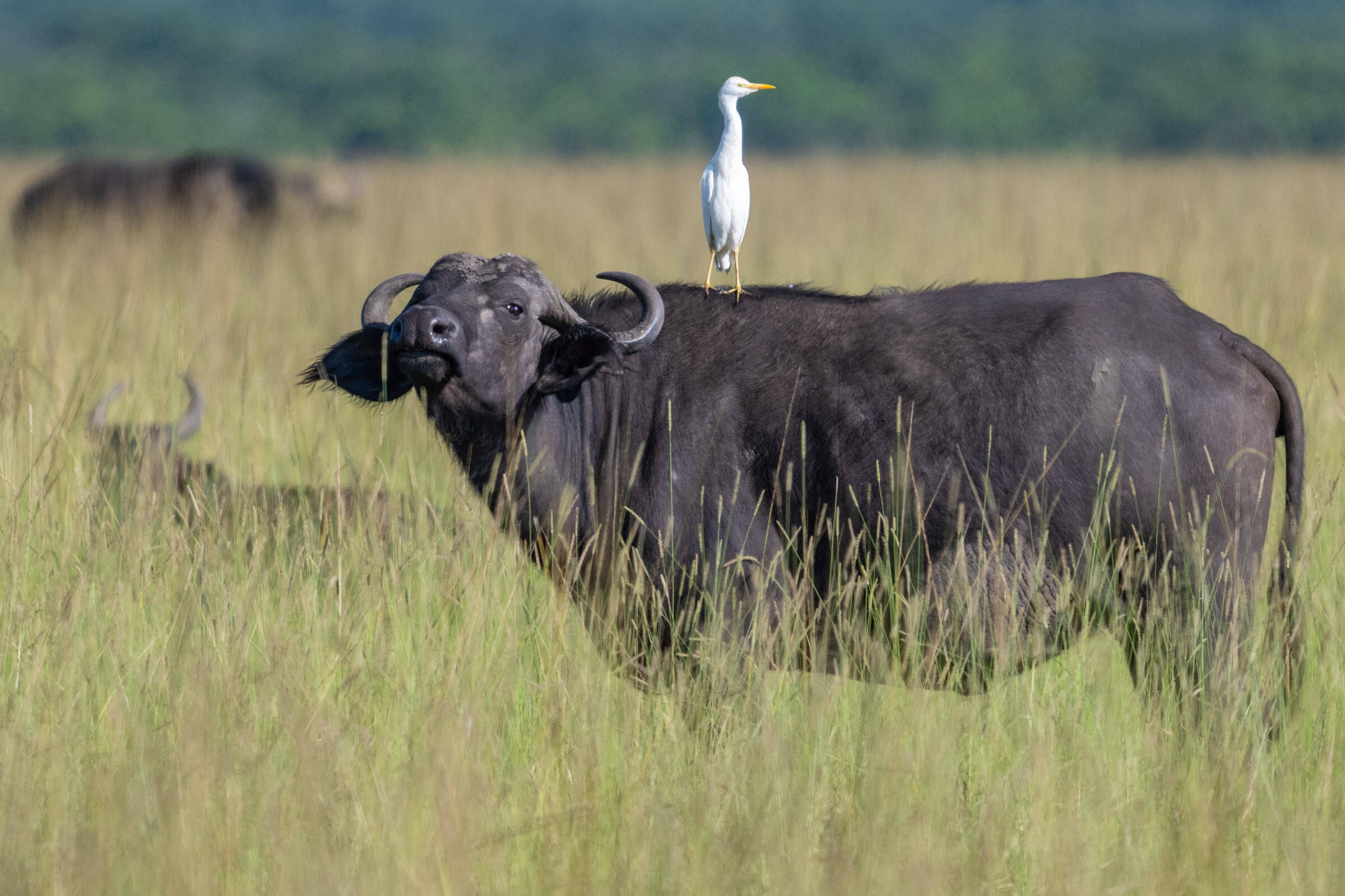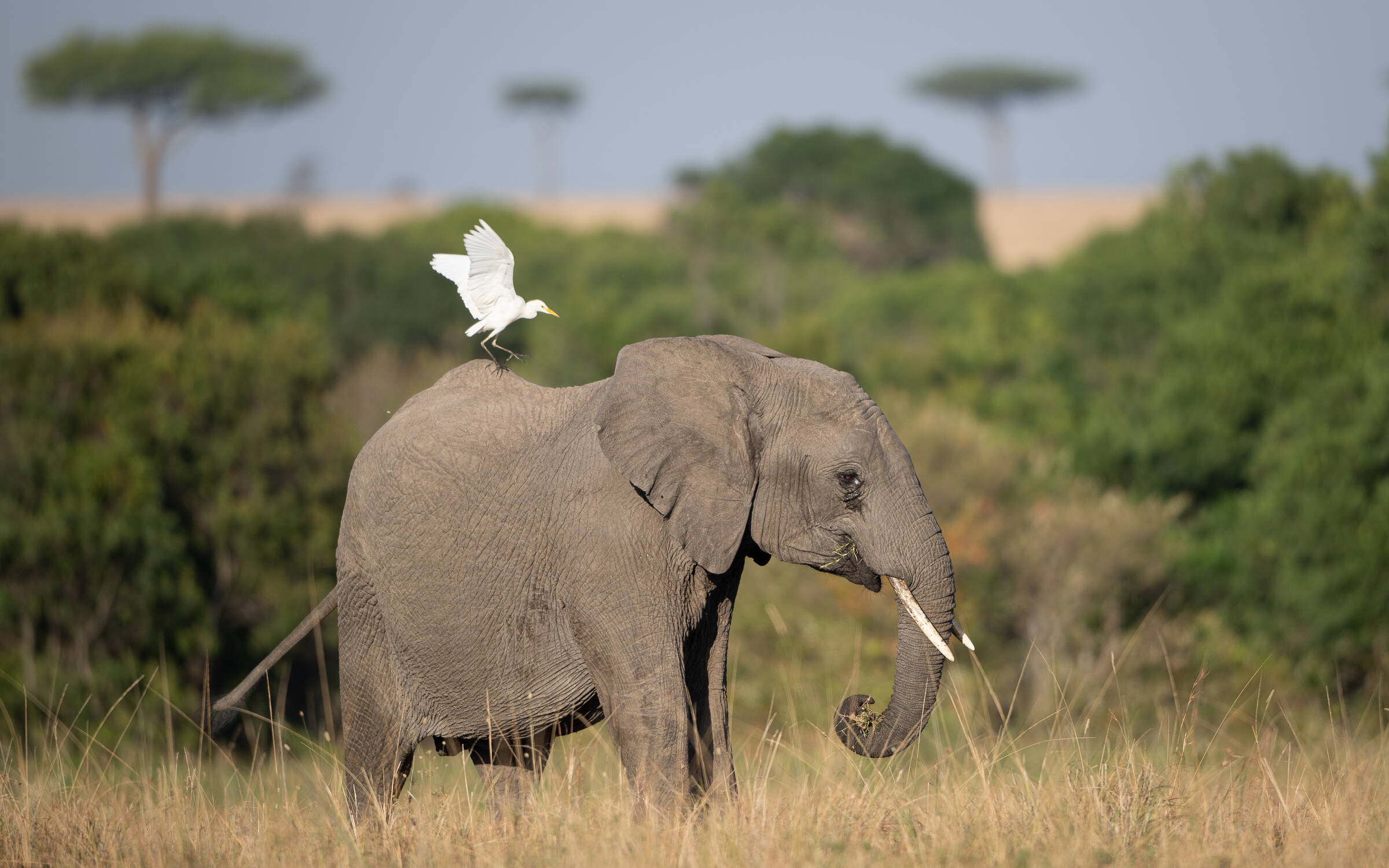 Uplassert , Egretthegre som jaktar på og frå elefant,