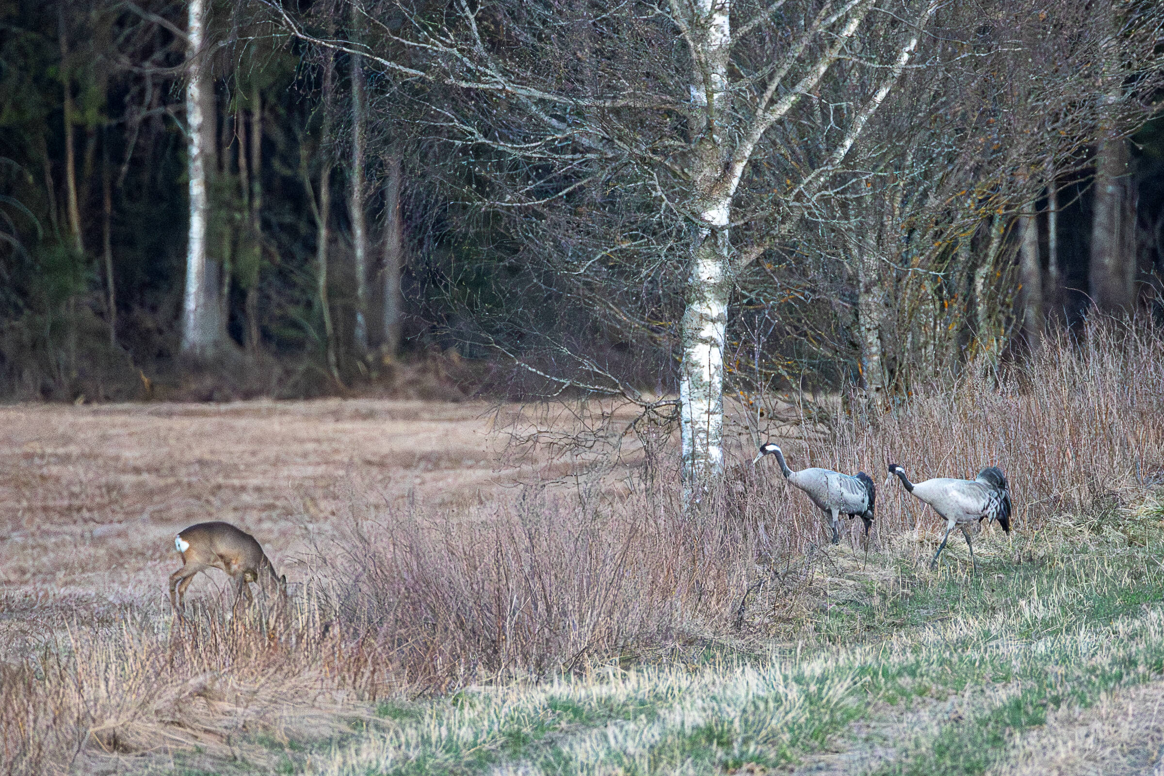 Uplassert , Rådyr og traner i åkeren,