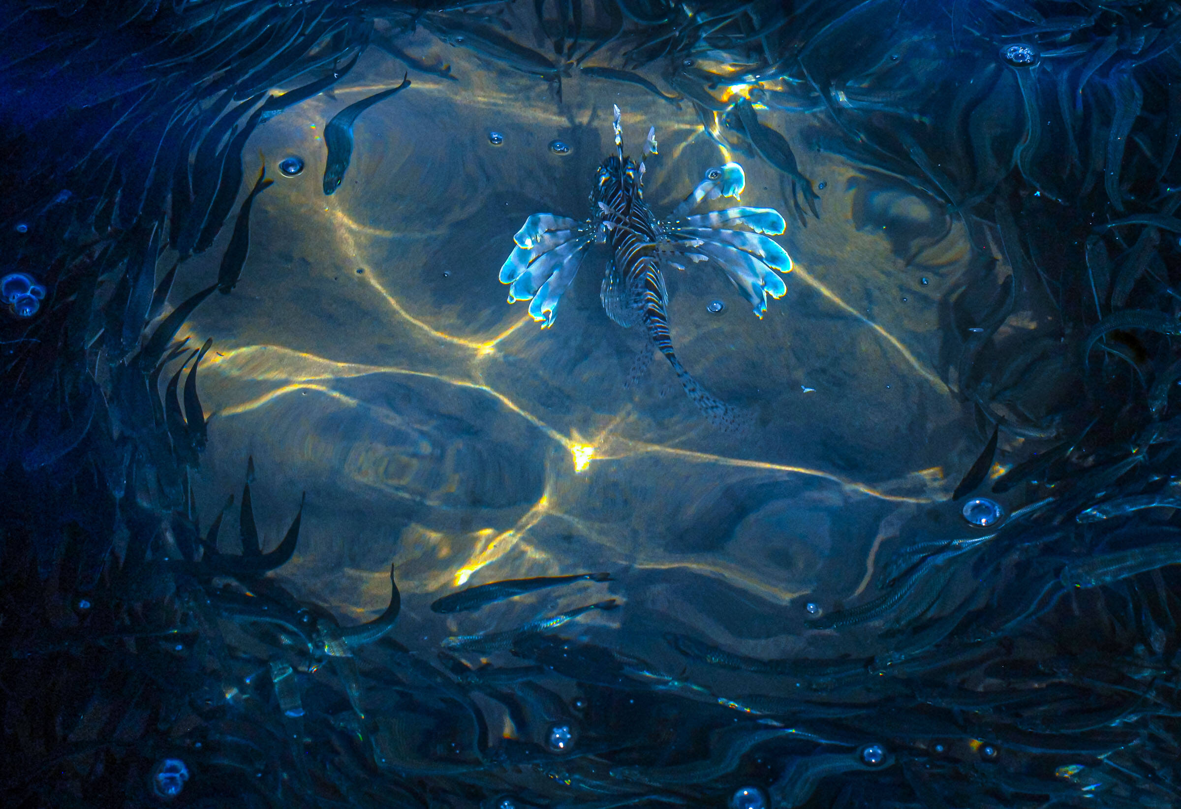 Hederlig , Småfisk omringer giftig løvefisk ,
