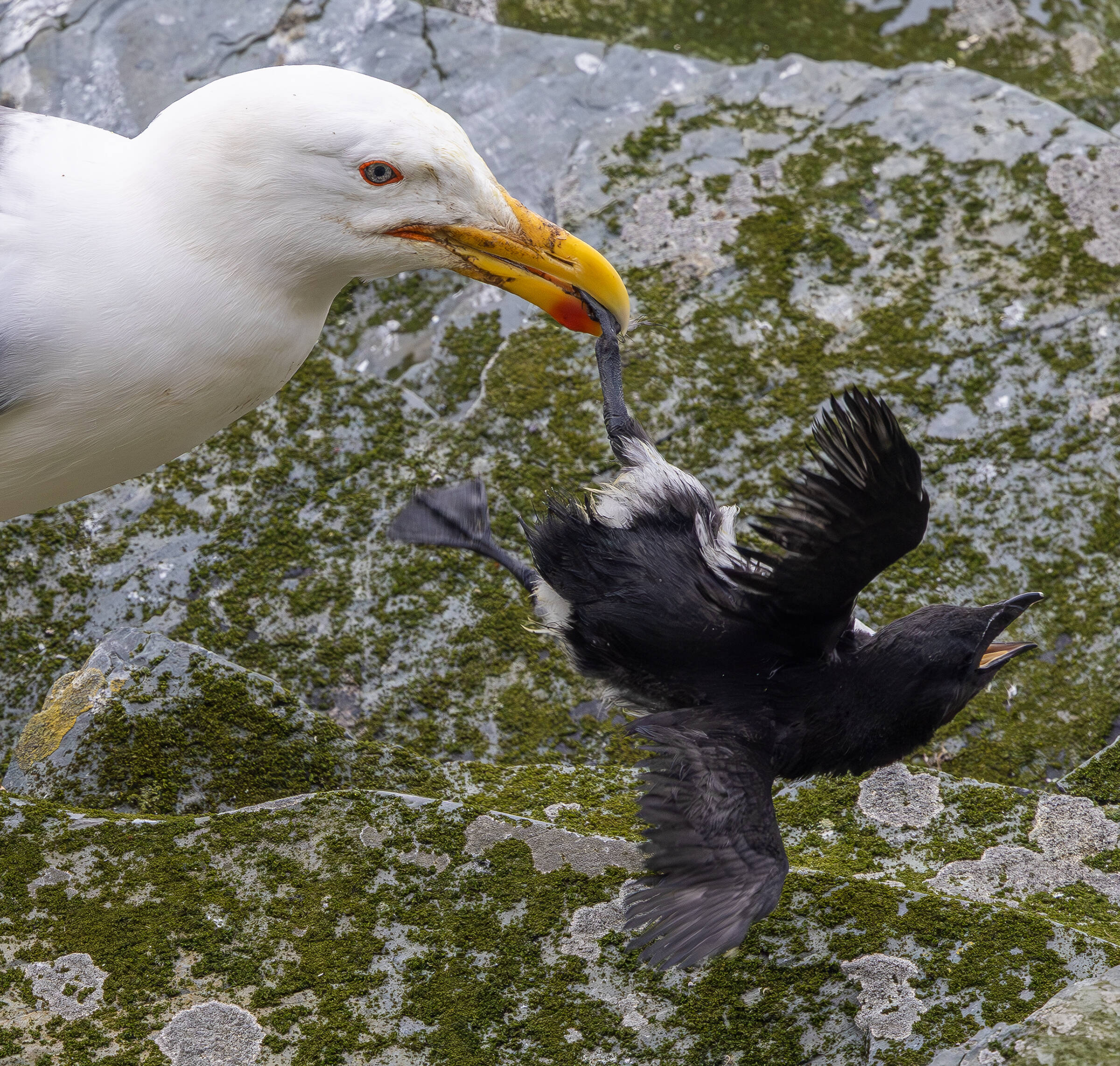 Uplassert , Svartbak og alke i konflikt,