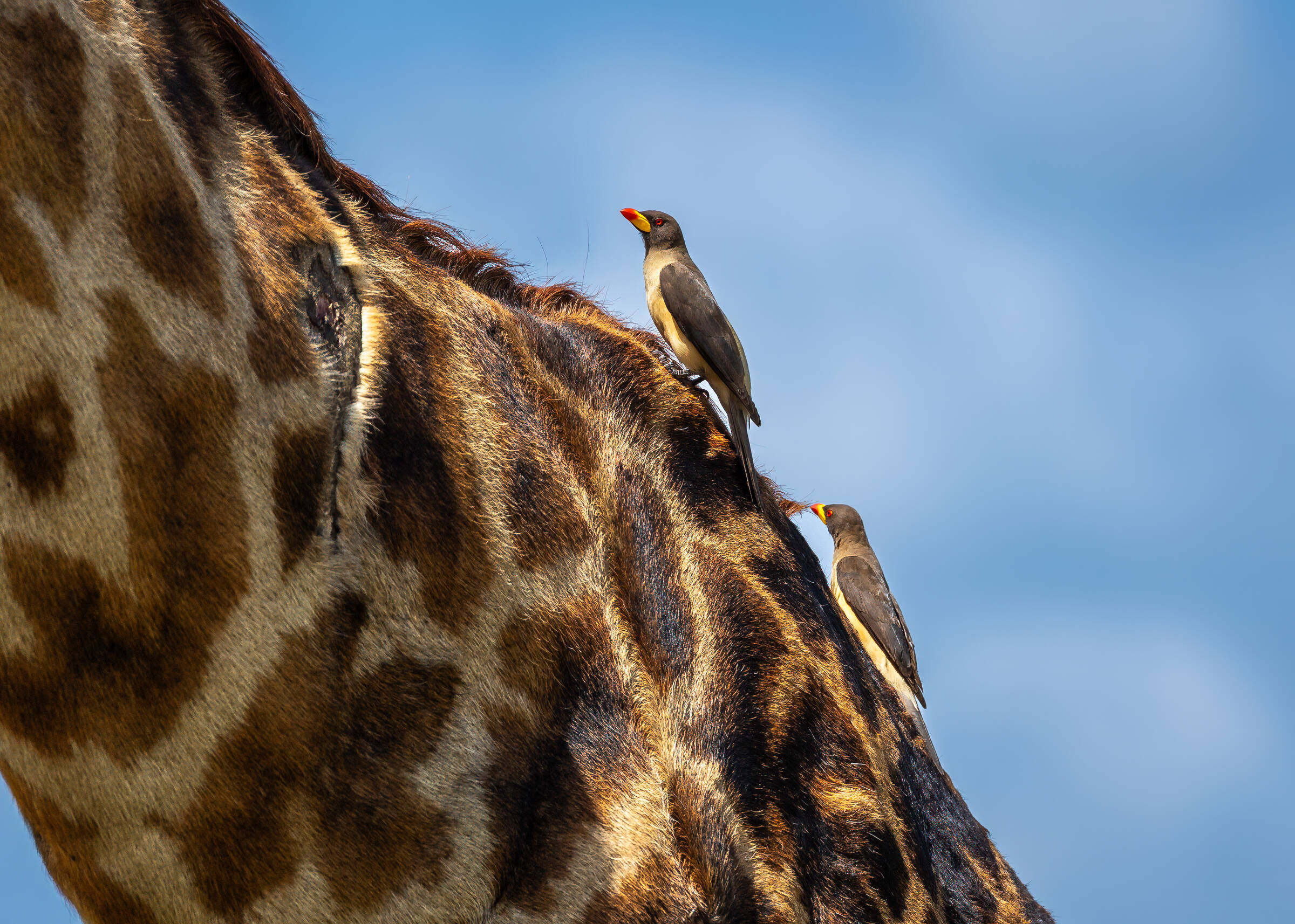 Hederlig , Gulnebboksehakker på sjiraff,