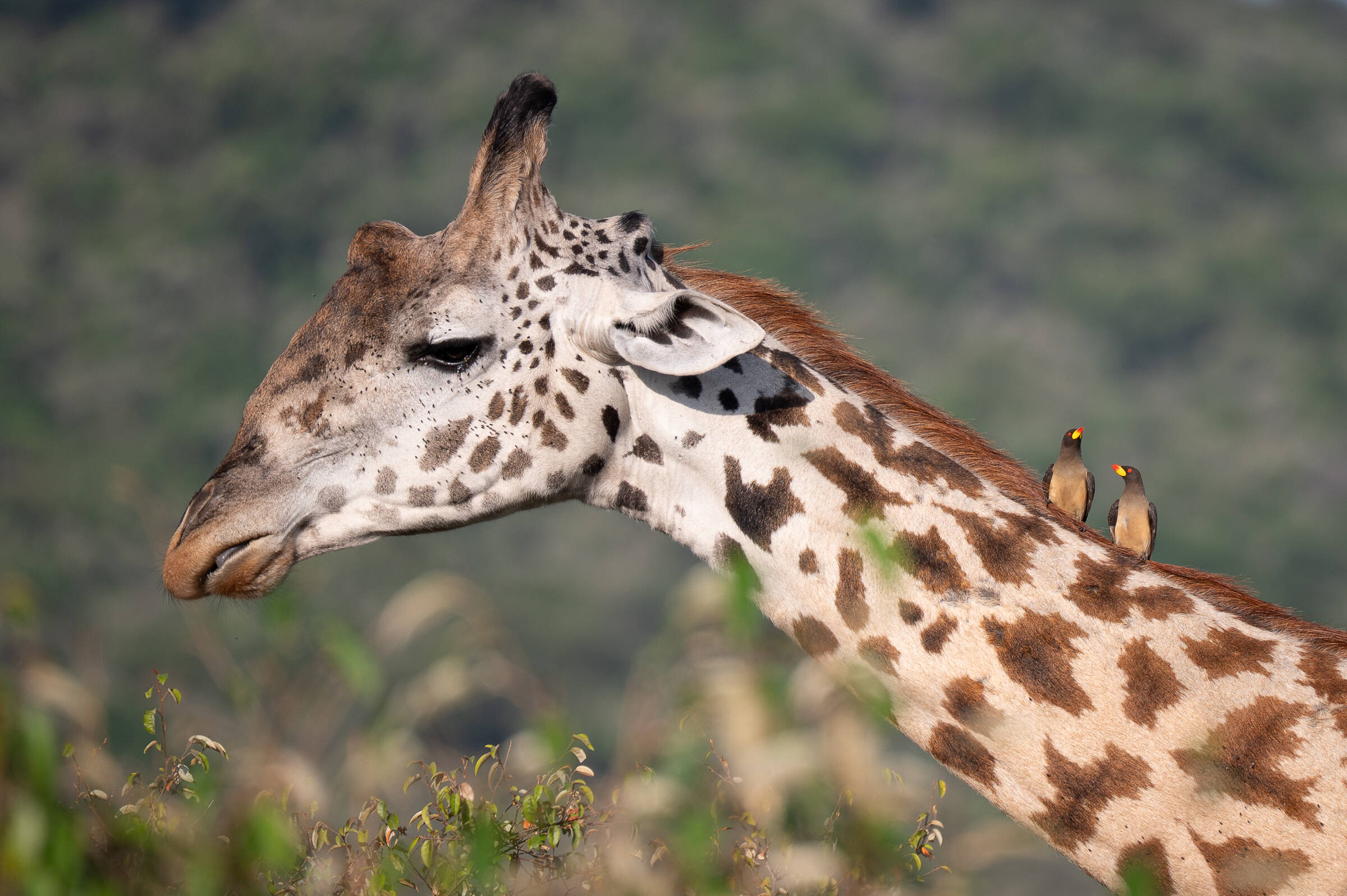Uplassert , Gulnebboksehakker og fluer på sjiraff,