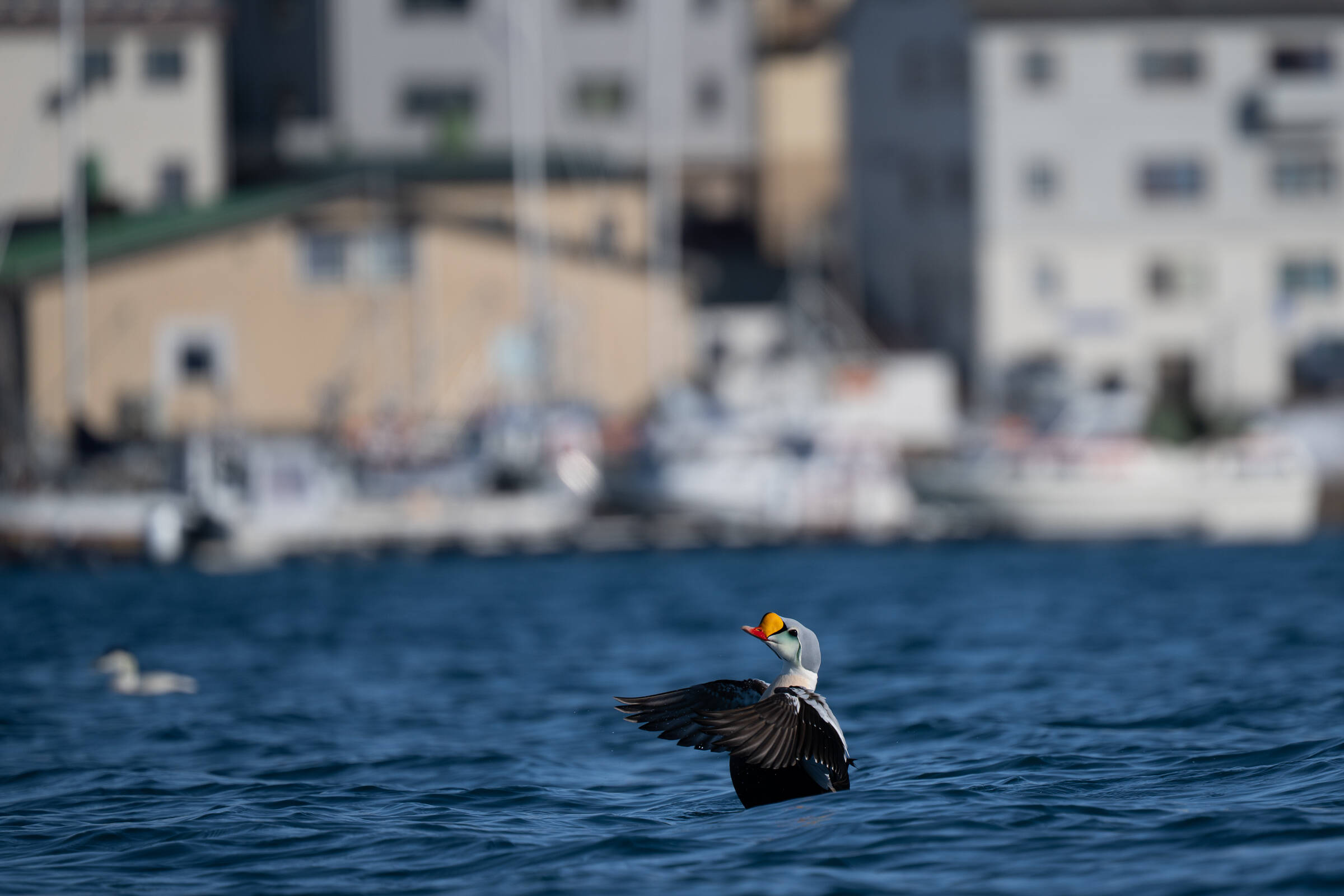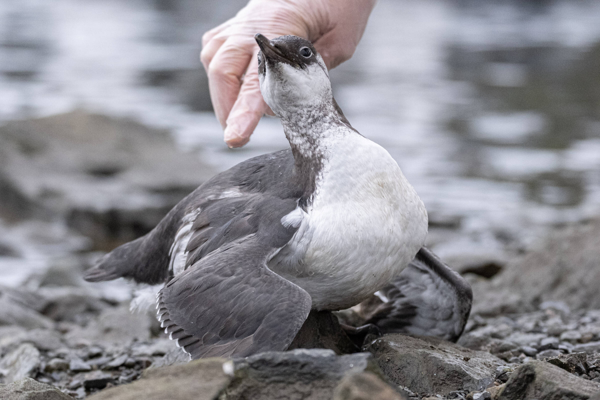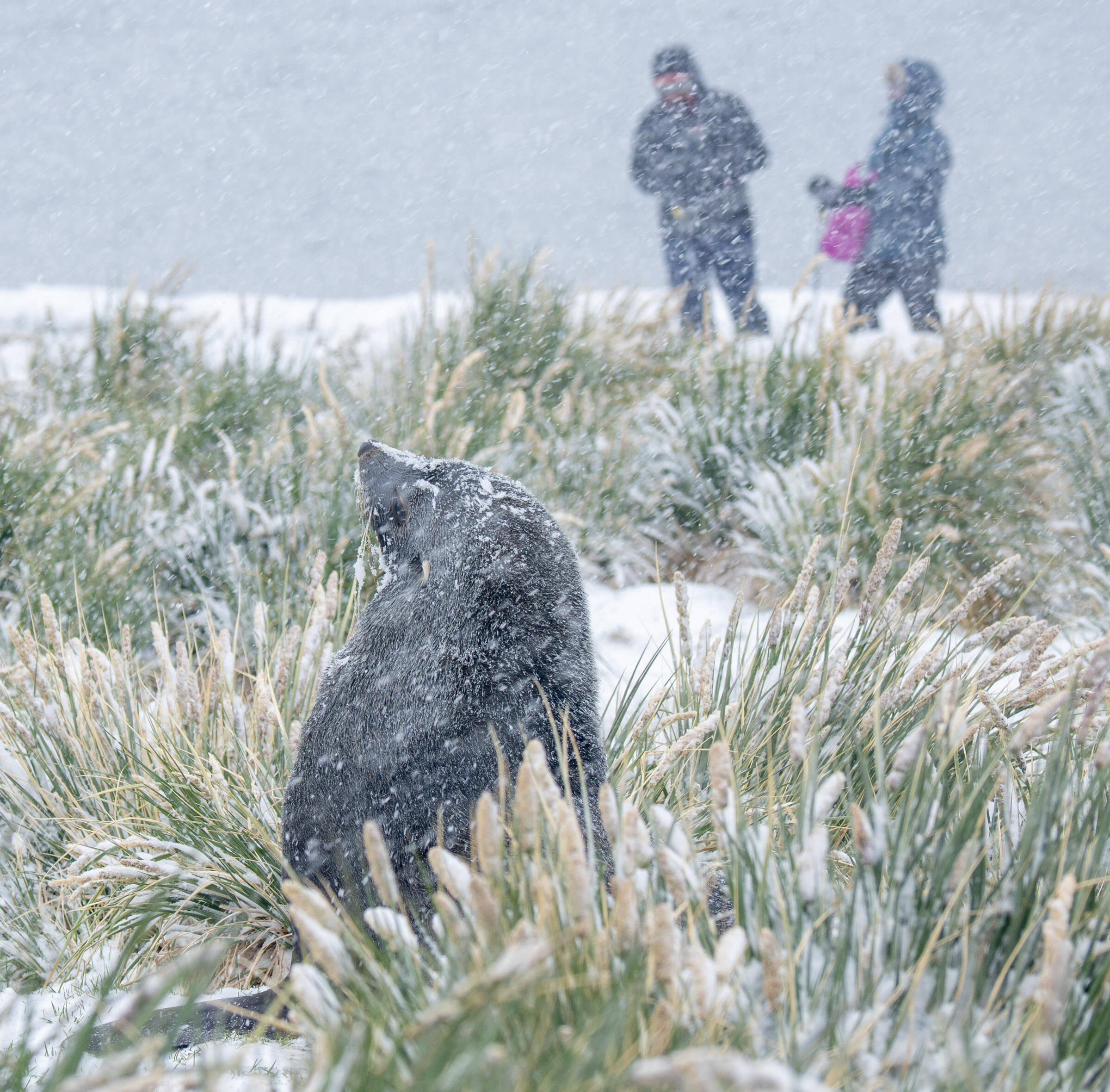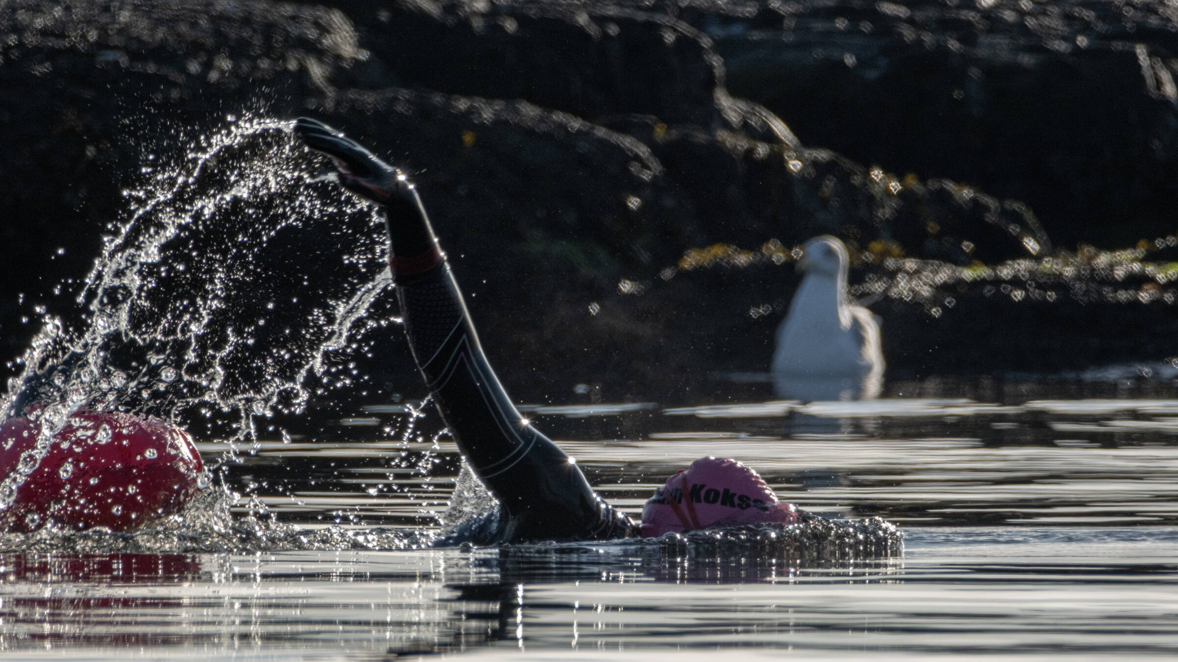 Rett og slett en artig og litt absurd situasjon med gråmåka i bakgrunnen som lurer på hva som skjer. En litt strammere komposisjon, der man fikk se hele vannspruten, og bedre teknisk kvalitet kunne løftet bildet enda et hakk.