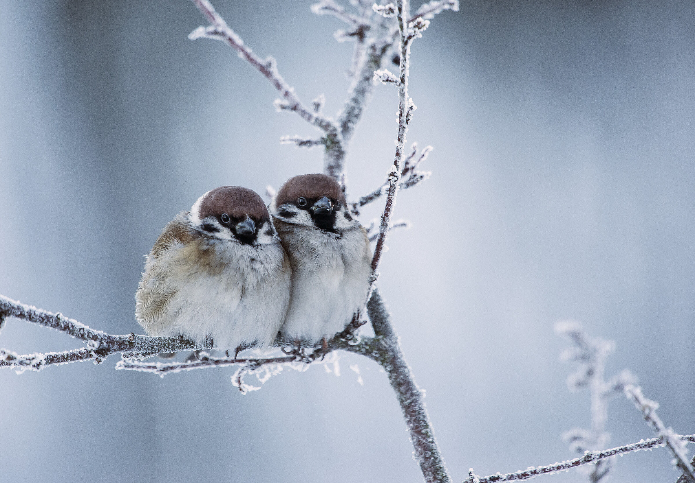 Her klaffer alt. En alminnelig fugl der fotografen har klart å gjøre noe ekstra ut av motivet. Flott komposisjon der de to fuglene sitter tett inntil hverandre. Vakkert med uskarp bakgrunn samtidig som kvister og greiner utgjør miljøet. Flott bilde og stemning