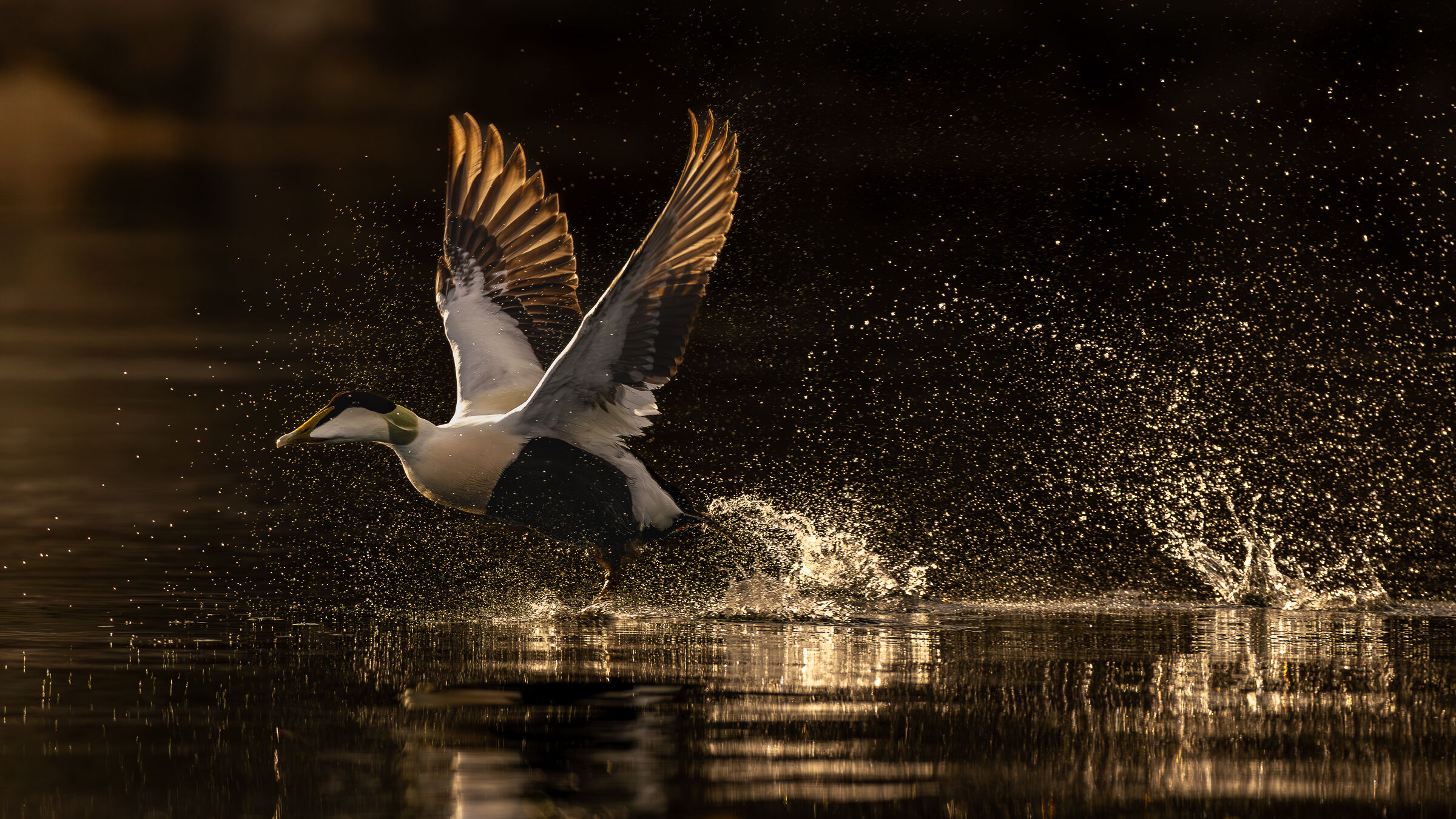 Faller alltid for gode panoreringsbilder. Motlyset som treffer vingene er helt nydelig. Vannspruten er prikken over i'en. Flott action og et gyldent øyeblikk For et bilde og stemning!!
