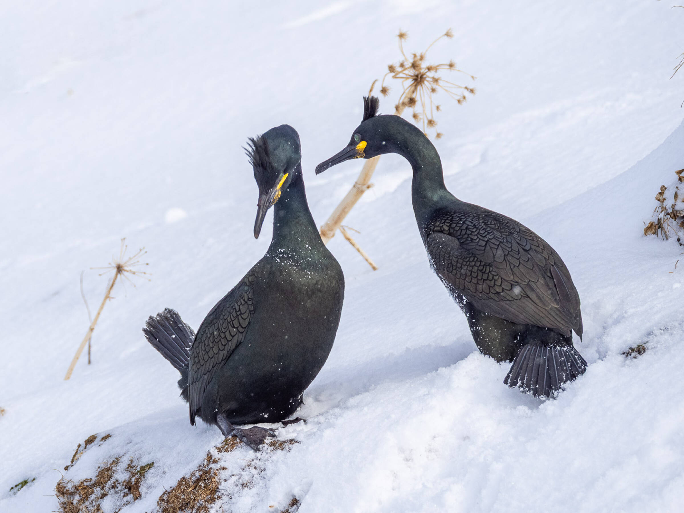 Lomvi i snøvær |