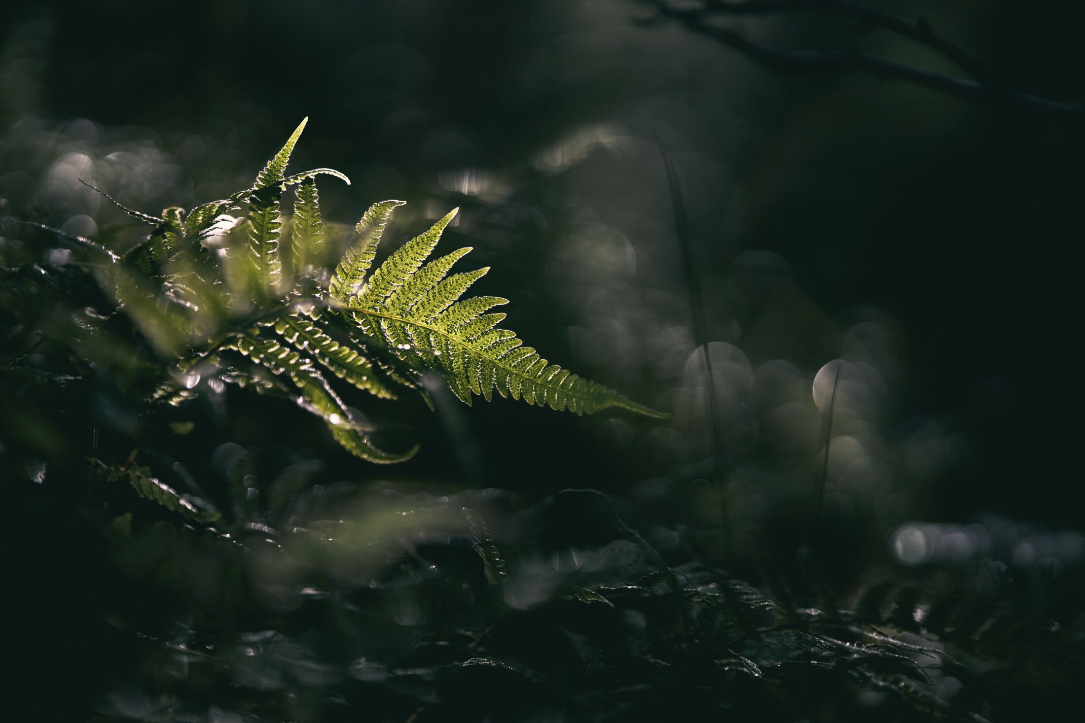 Vi føler at vi ligger på skogbunnen og kikker innover i bregneskogen. Nydelig lys på bregnen tilfører bildet svært mye. God dybde innover mot det mer ukjente og mørke. Dust og fint, godt valg av dybdeskarphet. Gode grønntoner.