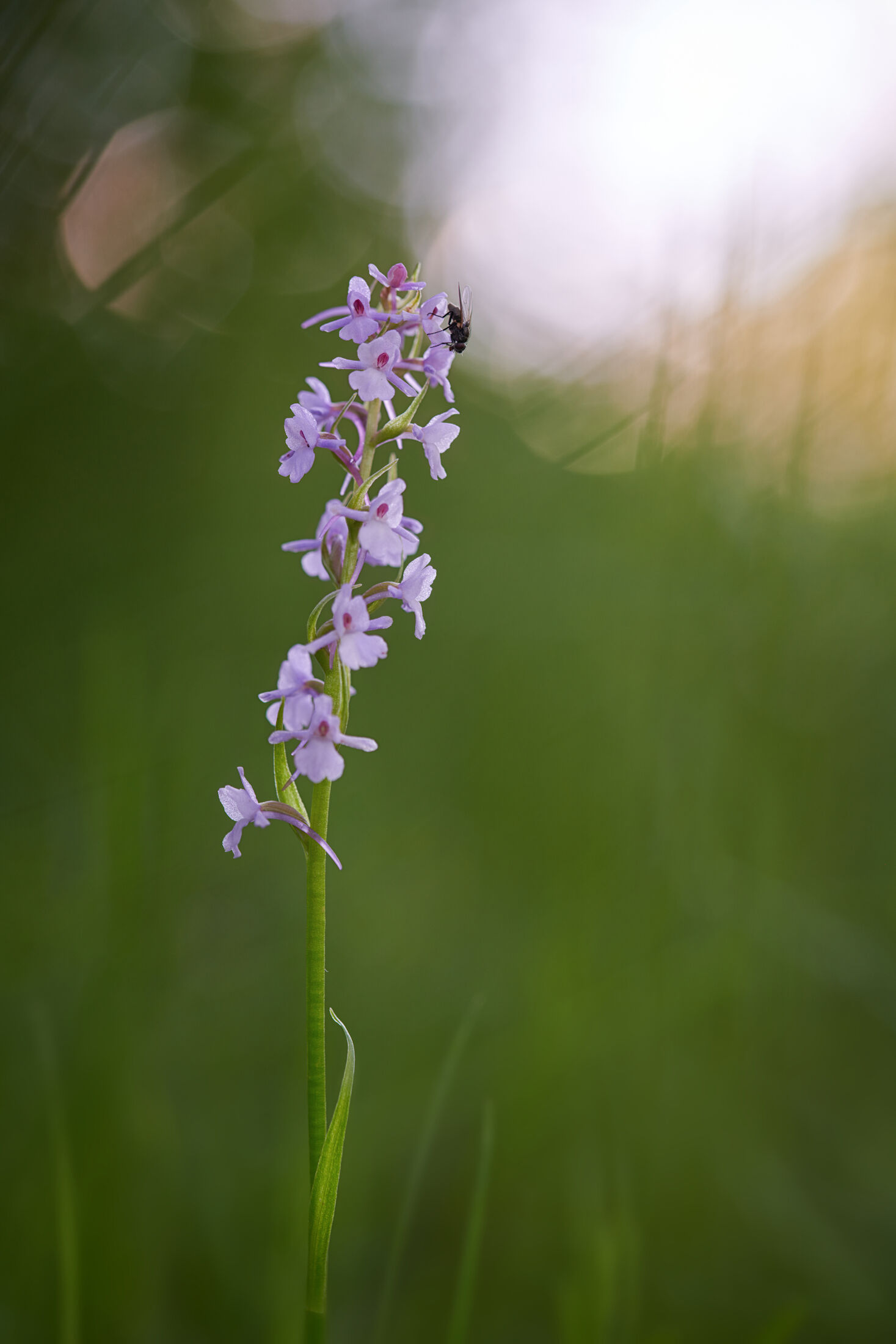 Tips: Det lyse området til høyre i bildet stjeler oppmerksomhet fra huldreblomen, så kanskje en beskjæring eller demping ville fått frem orkideen enda bedre. Også det grønne, diffuse området til venstre i front er noe forstyrrende.