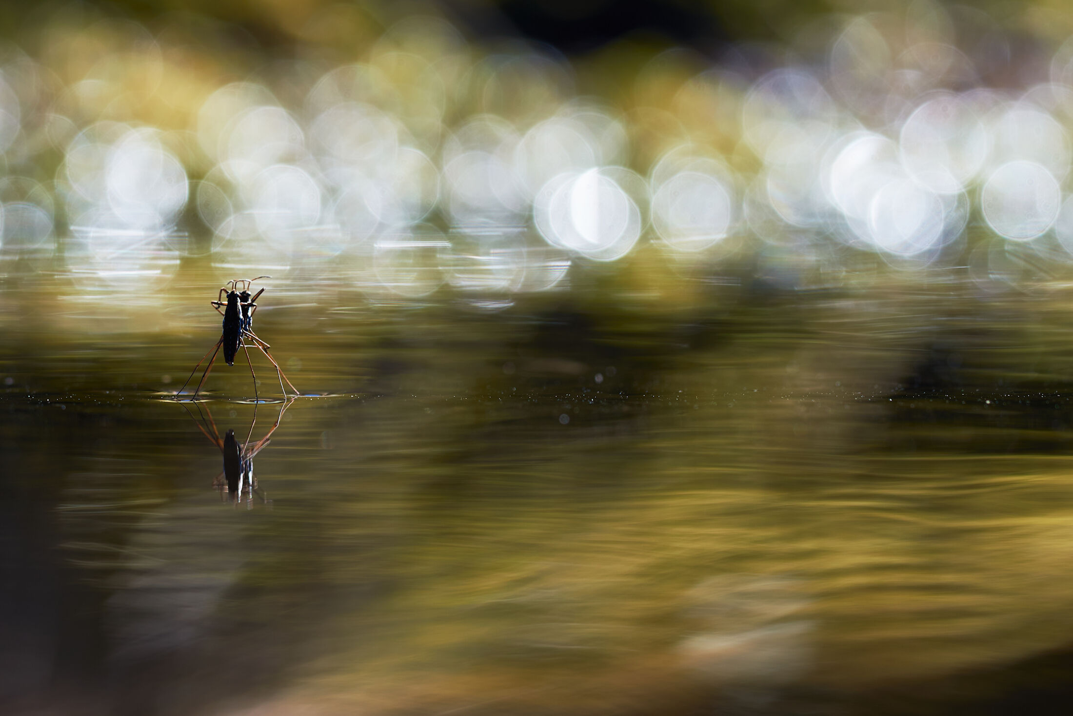 Her fikk juryen en interessant diskusjon rundt innholdet i bildet. De "dansende" vannløperne var et nytt naturinnslag for oss alle. Bildet i seg selv må ha vært utfordrende å ta, og det er svært godt observert av fotografen. Vakre omgivelser, og refleksene i bakgrunnen viser at fotografen hadde et lavt standpunkt; har jobbet godt for å få frem vannløperne.