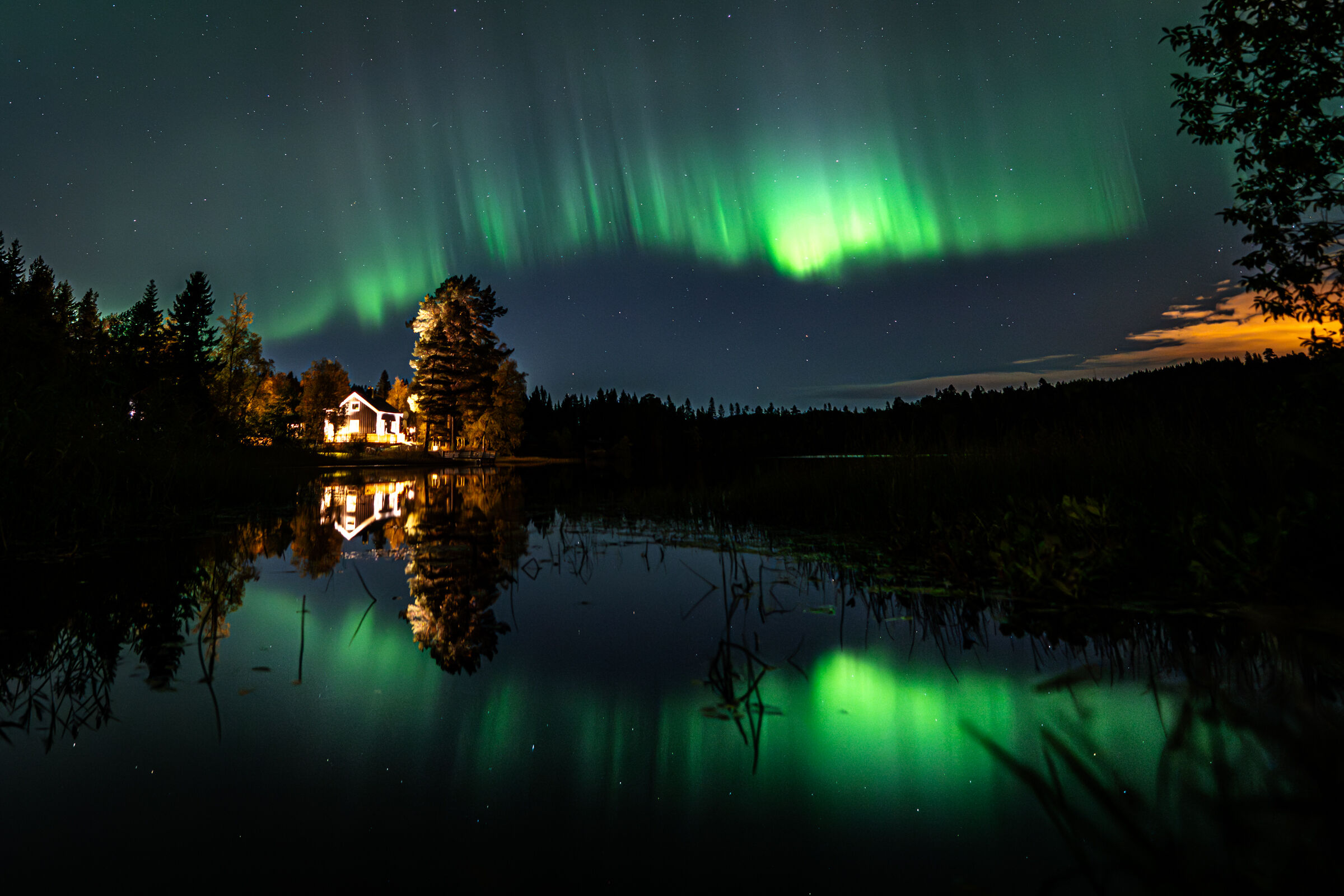 Uplassert , Nordlys over tjønna,
