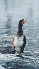 Dansende skarv | Klaus Madsen | BioFoto Norge - fotokonkurransen 2024 | Snø/frost-bilde |