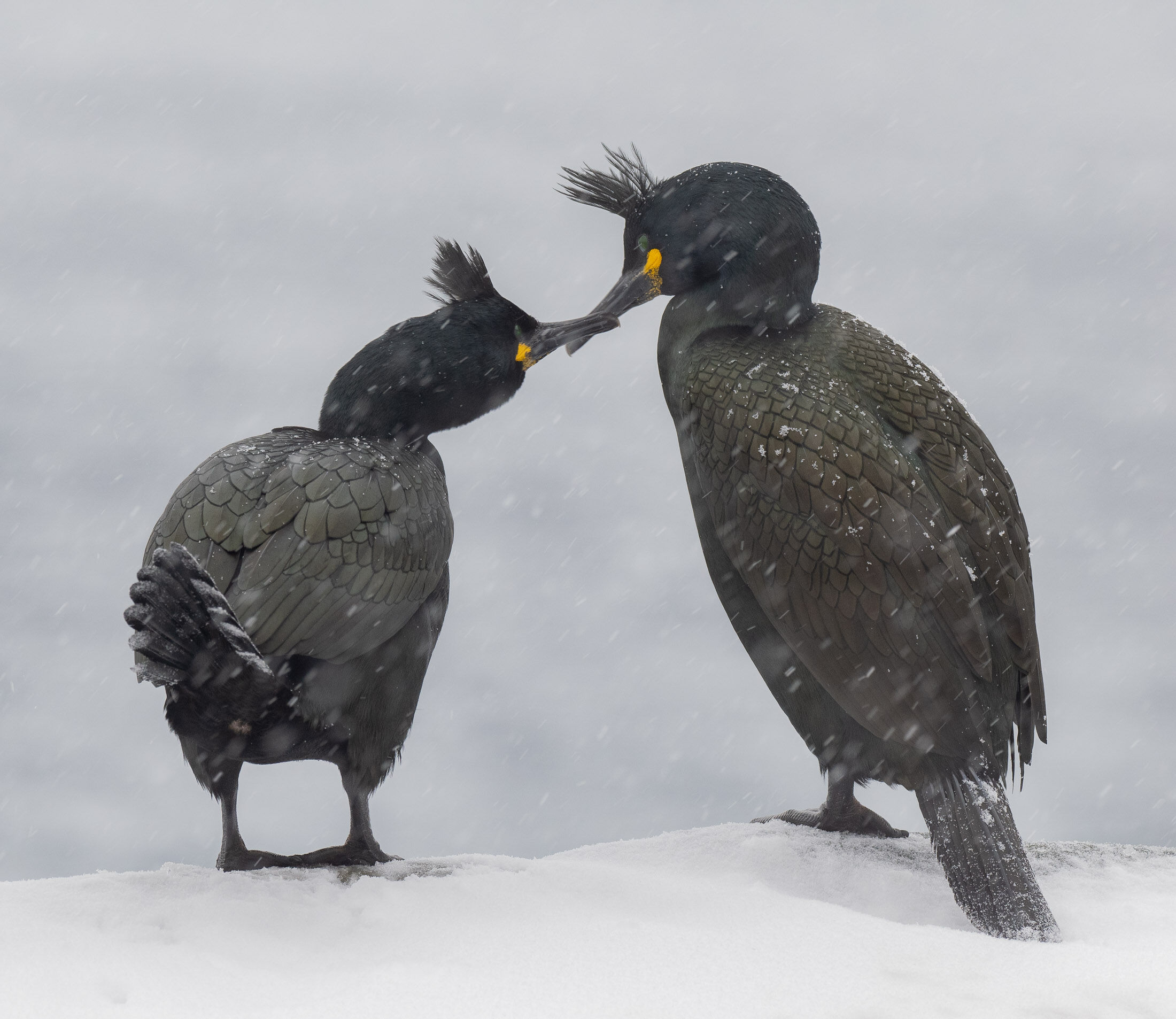 toppskarv i snøvær |