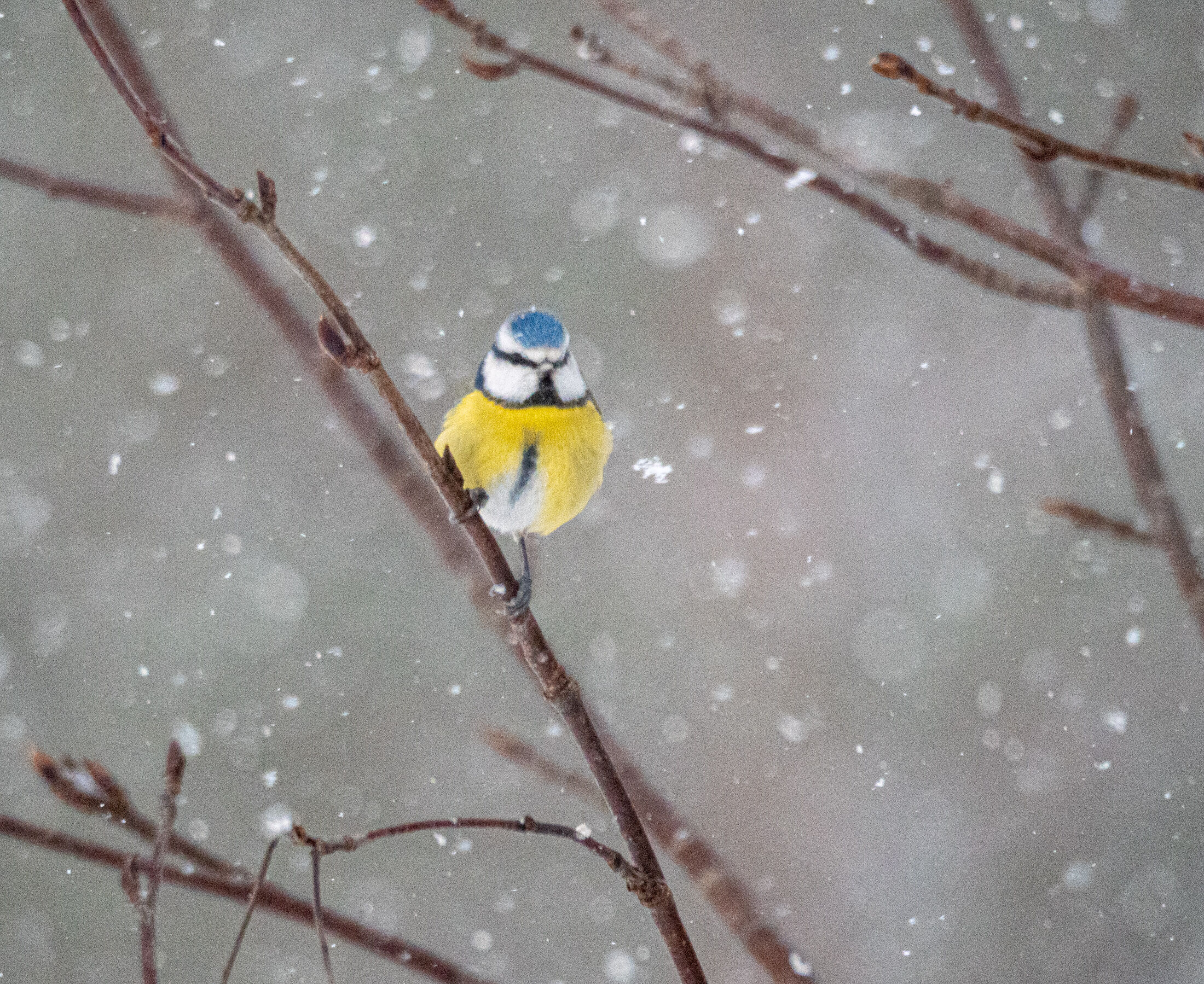 Blåmeis i snøvær |